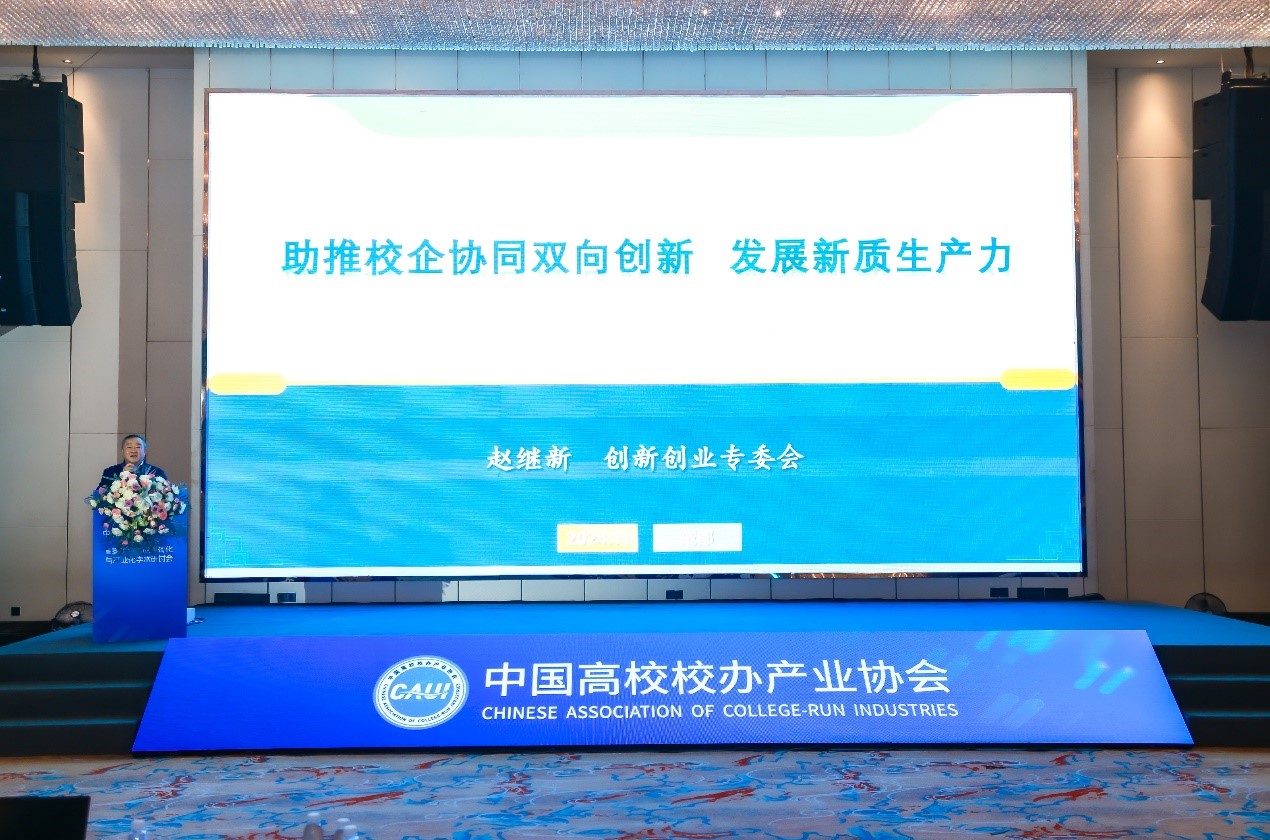 在研讨会上,w66利来旗舰厅经理赵继新教授作为中国高校校办产业协会创新创业专业委员会会长做了名为《助推校企协同双向创新 发展新质生产力》的主题报告。解析了新质生产力、全要素生产率和高质量发展的内涵,提出加快培育新质生产力的重点工作,并结合科技、教育和人才三个重大发展战略阐述创新创业专业委员会的工作目标、专注领域和工作方向,为企业和高校实现双向赋能发展搭建平台。