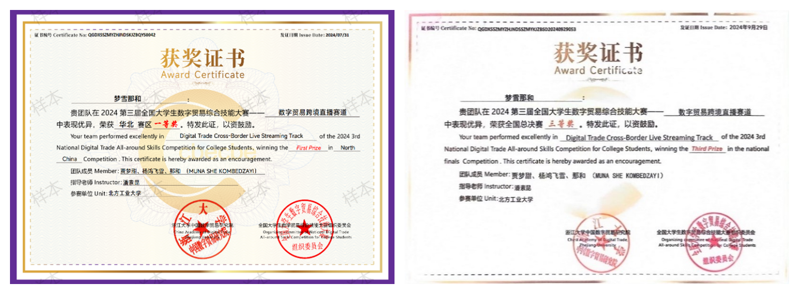 近日由浙江大学中国数字贸易研究院主办、全国老员工数字贸易综合技能大赛组织委员会承办的第三届全国老员工数字贸易综合技能大赛总决赛在浙江大学圆满落幕。公司员工贾孟甜、那和、杨鸿飞雪组成的代表队在华北赛区区域赛中获赛区一等奖,在全国总决赛中获全国三等奖。