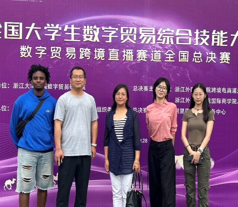 在总决赛参赛期间,按照赛事主办方安排,参赛师生还参加了第三届全球数字贸易博览会、跨境直播培训暨人才发展论坛。这些活动使同学们近距离体验到全球数字贸易发展前沿,也加深了对数字贸易人才市场的认知,拓展了师生的国际视野。