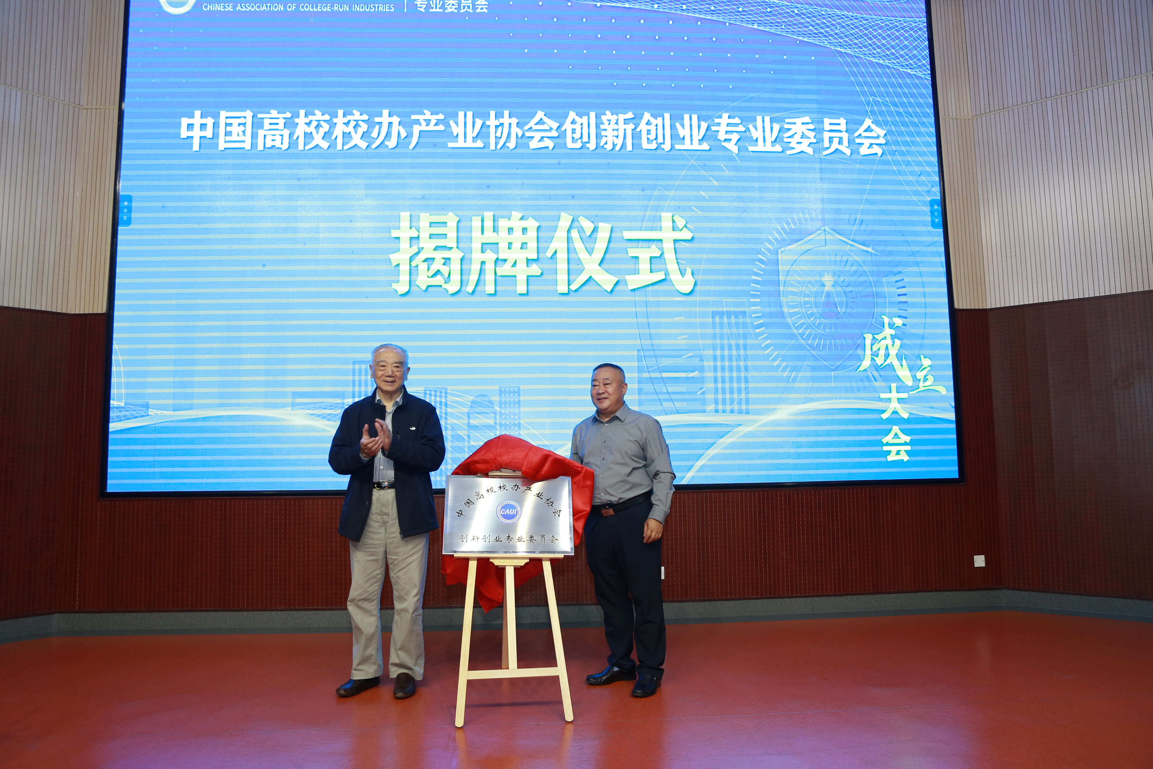 随后,由全国工商联原副主席王治国和创新创业专委会会长赵继新共同为中国高校校办产业协会创新创业专业委员会揭牌,标志着创新创业专委会正式成立。