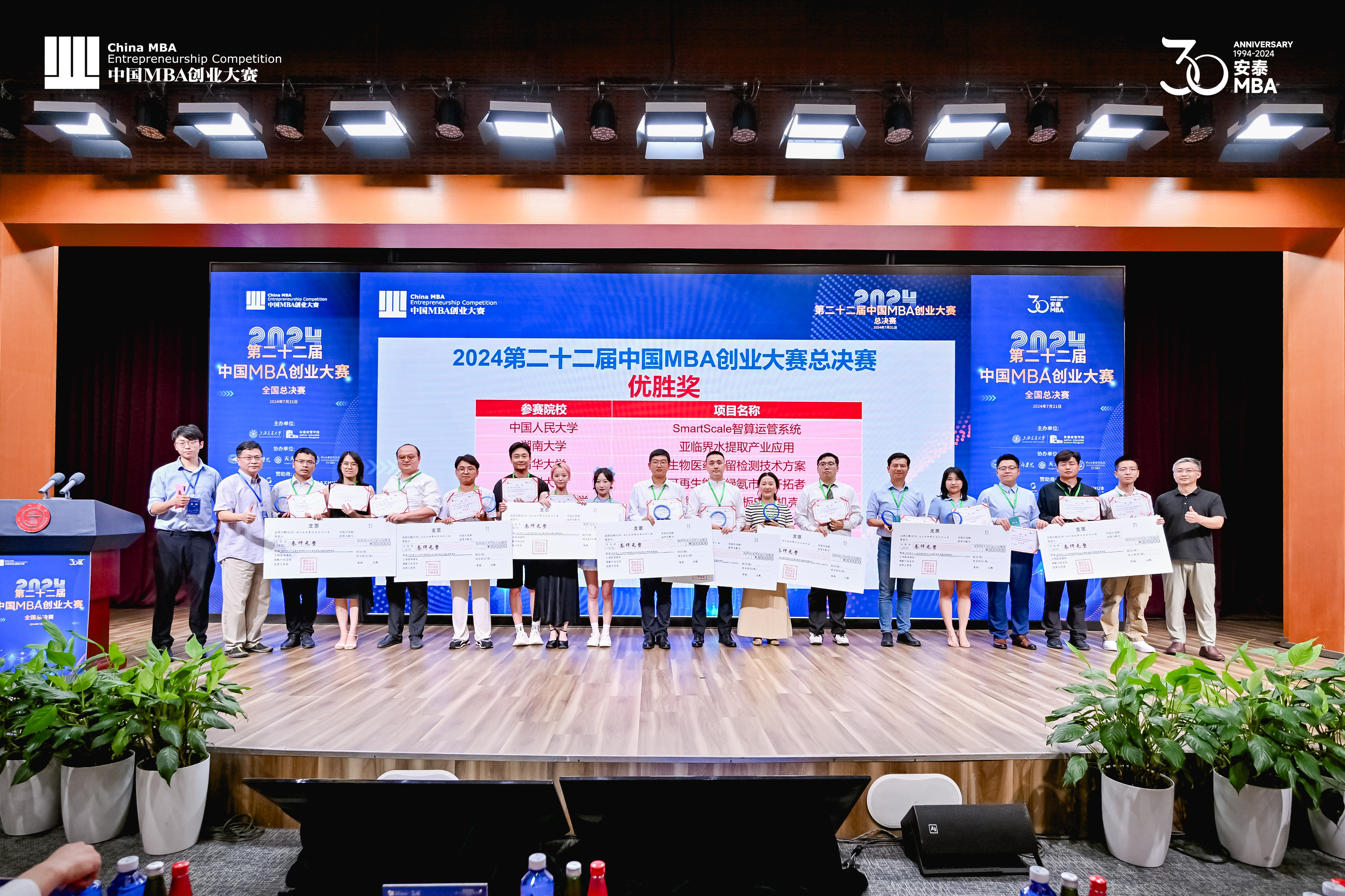 中国MBA创业大赛是MBA领域的顶级创业主题赛事之一,具有广泛的影响力。2024年,来自全国88所商公司的437支参赛团队报名参赛,参赛队伍数量创历届新高。经过历时四个多月的初赛选拔、培训打磨和复赛角逐,共有来自w66旗舰厅官网、北京航空航天大学、大连理工大学、哈尔滨工业大学、湖南大学、华东理工大学、清华大学、厦门大学、上海交通大学、上海外国语大学、四川大学、天津大学、武汉大学、西北大学、浙江大学、中国科学技术大学、中国人民大学(按院校拼音顺序)等17所高校的17支队伍进入总决赛。在全国总决赛的赛场上,公司参赛团队做了活泼精彩的展示和问答,获得了来自青松资本、联创资本、软银中国、梅花创投等评委的认可和好评,同时也收获了很多发展性建议和潜在的投资机会,为参赛团队的高质量创业明确了方向。