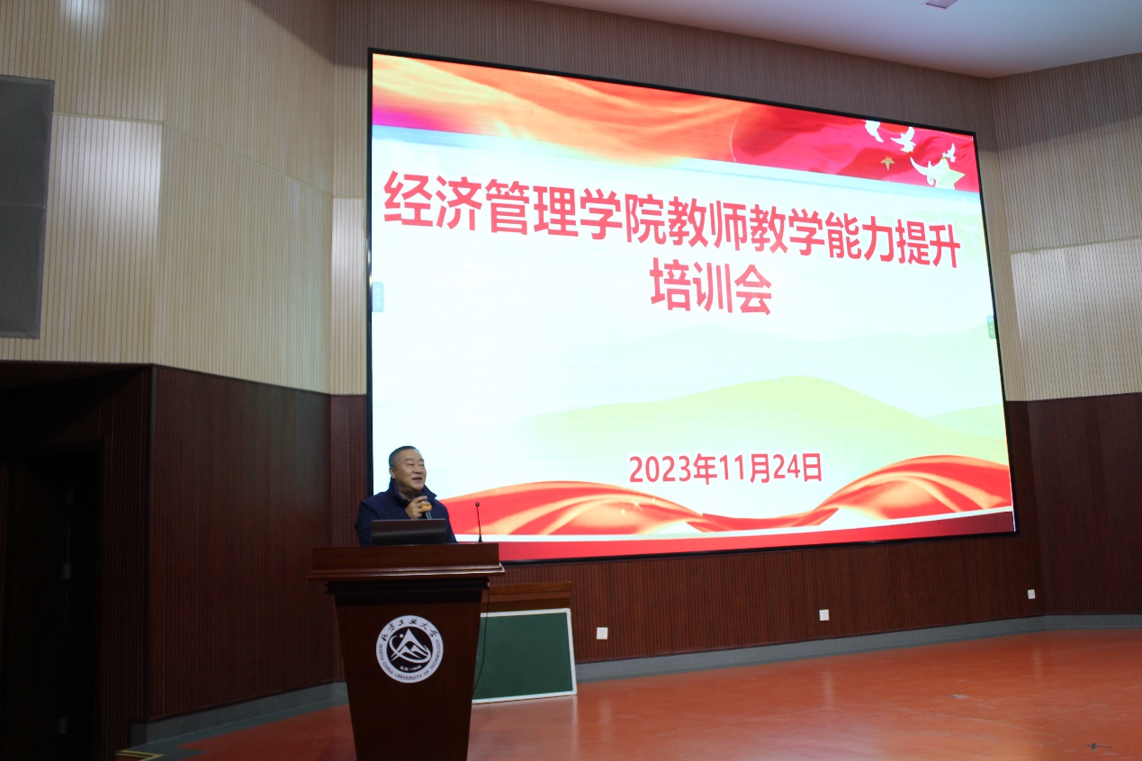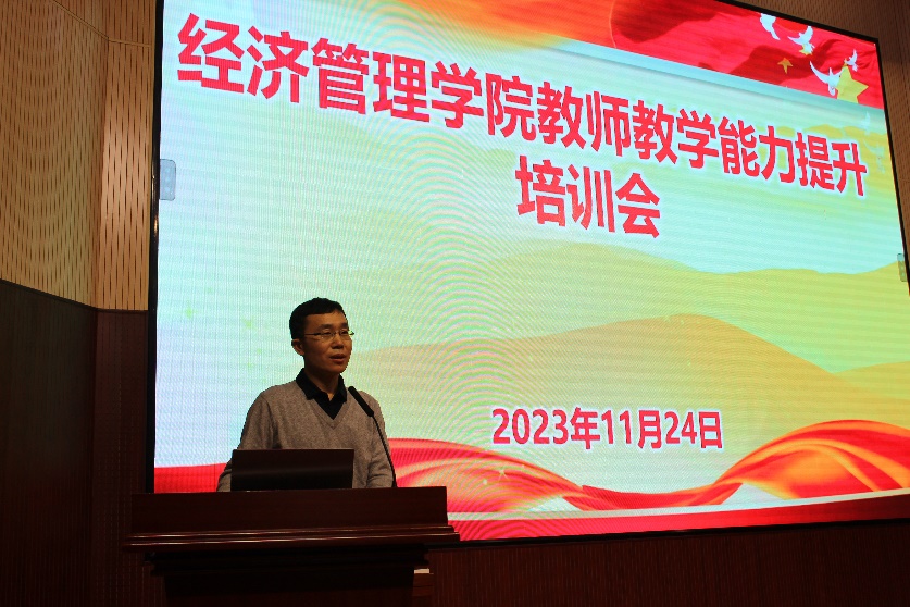 经济管理公司党委书记谢朝阳首先代表公司对举办本次培训会的背景和意义作了说明,对两位老师的鼎力支持表示感谢。他对公司目前面临的形势以及行业趋势做了分析,希望全院教师提高认识,更新观念,加强学习,潜心教书育人。