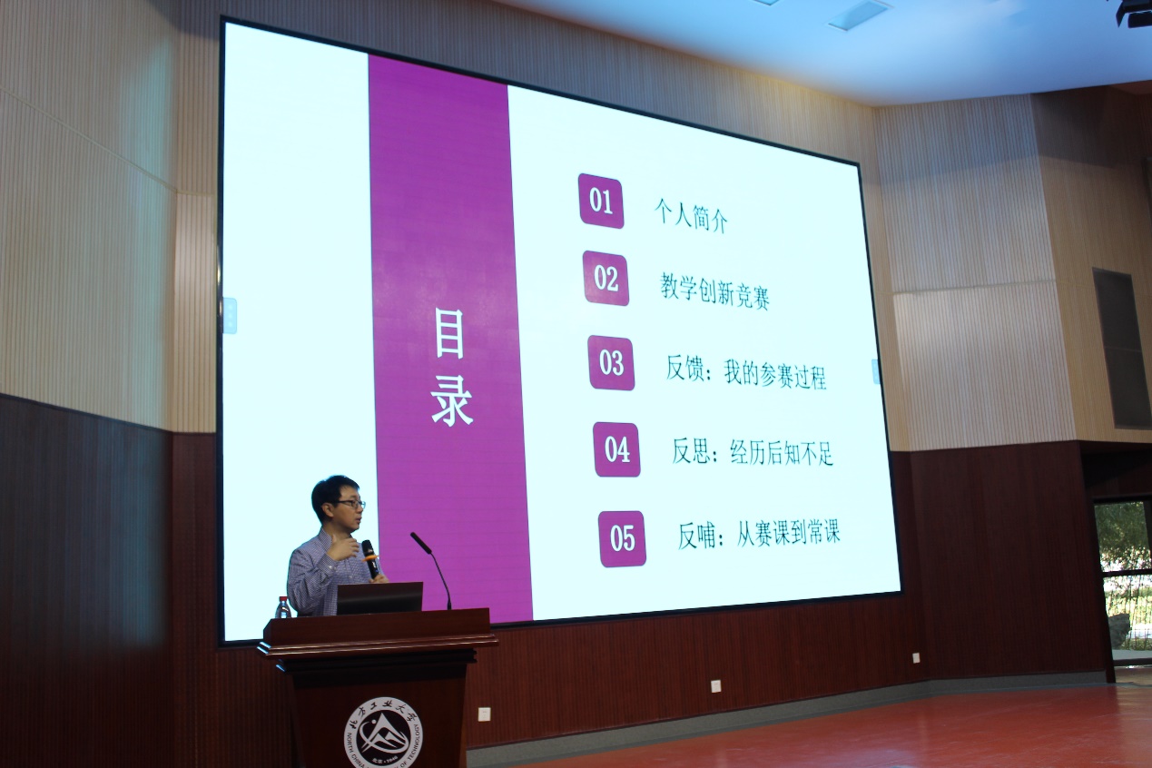 王若宾老师从教学创新大赛参赛后反馈、参赛过程反思及对教学工作的反哺三个角度,对教学创新大赛参赛经验与心得进行了系统分享,提出“用发现亮点的眼睛看员工”、“比赛只是经历,教学方为日常”等经典感悟。王莉娜老师首先重新呈现了参赛课堂演示,再从自己的参赛经历出发,将参赛准备、教学设计理念更新等方面进行了详细介绍,得出“多学习、多反思才能真正提高”的心得体会。