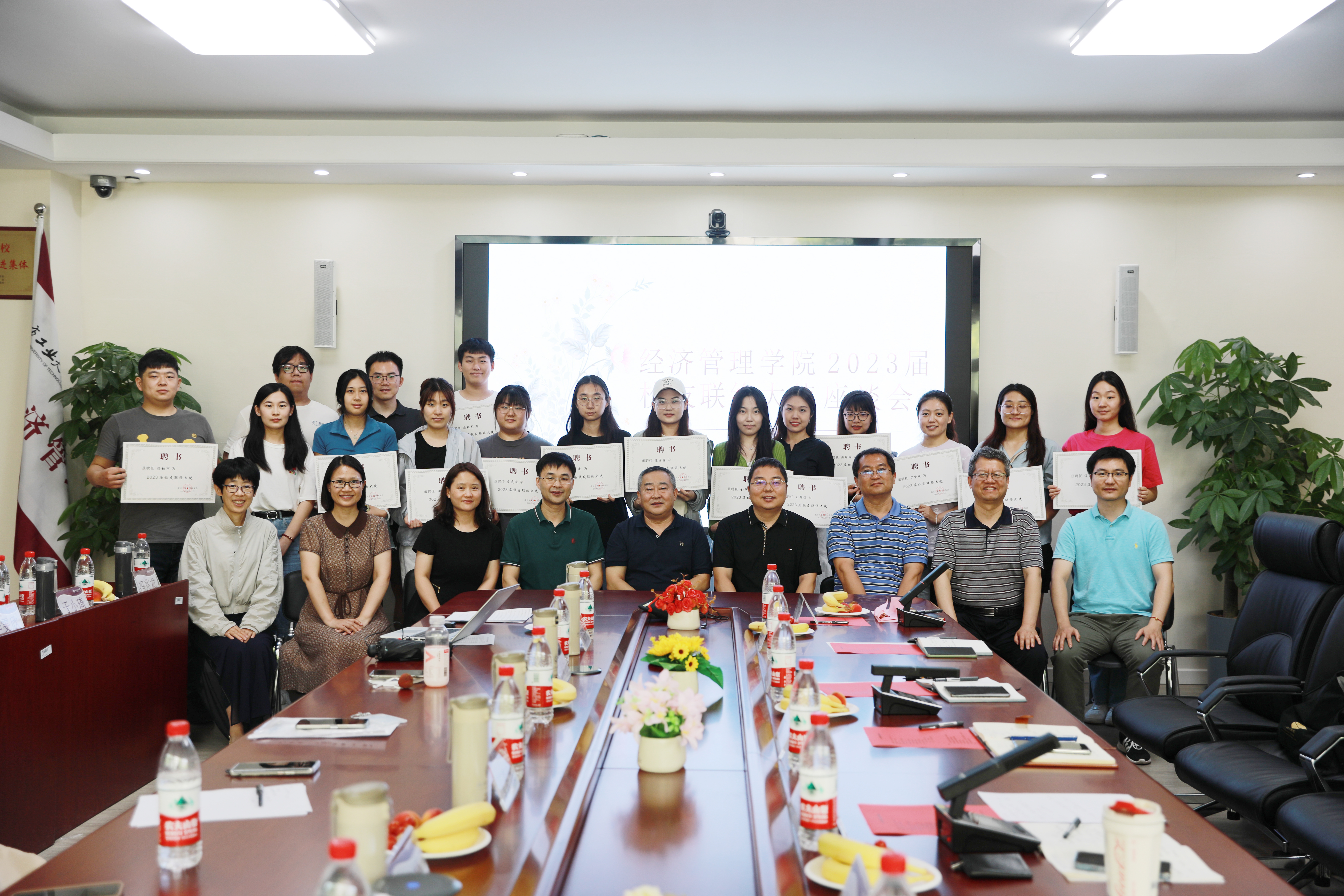最后,陈勇钢、赵继新、王伟宾共同为公司2023届校园联络大使颁发聘书,并合影留念。