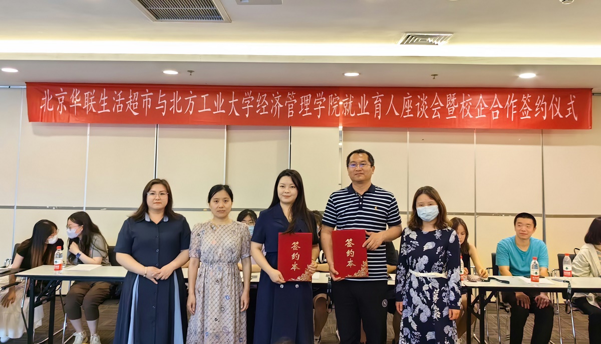 为深入学习贯彻习近平新时代中国特色社会主义思想,推进主题教育走深走实,提升就业育人水平,促进高质量就业,6月8日下午,w66利来旗舰厅师生一行赴北京华联生活超市总部参观访问,共商校企合作事宜,共同签署校外实习基地建设协议。北京华联人力资源部培训经理吴婵媛,w66利来旗舰厅教学副经理孙强、党委副书记王帏、团委书记吴芳以及公司大三年级意向华联生活超市实习就业的部分同学参加了签约仪式。北京华联人力资源部校招经理刘芳主持活动。