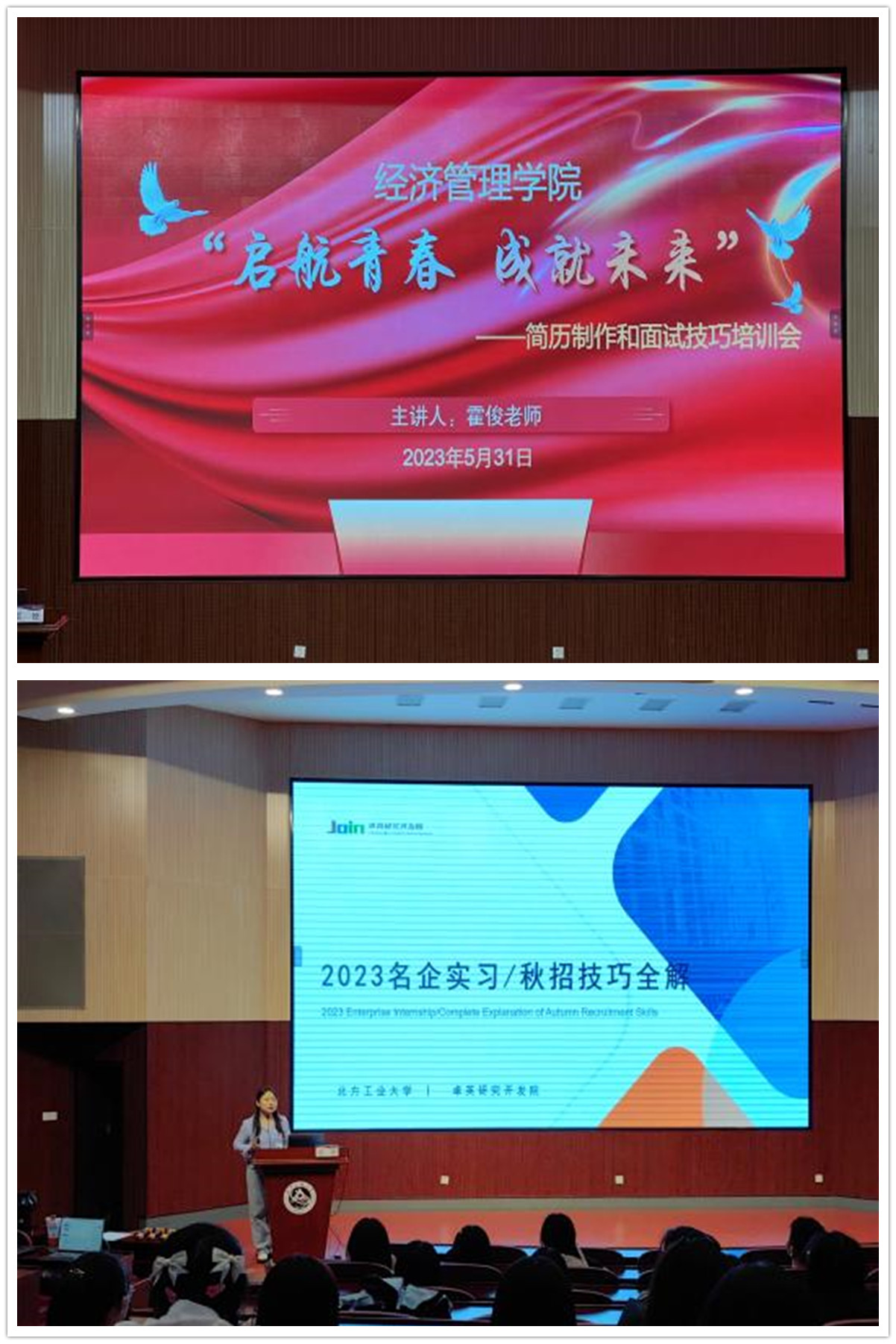 5月31日晚,w66利来旗舰厅在文化会堂举办“启航青春,成就未来”简历制作和面试技巧培训会,在公司招就处的大力支持下,邀请了具有资深人力资源和教育培训从业经验的霍俊老师讲授名企求职简历面试技巧,广大20级同学参加。霍老师是卓英研究开发院高级讲师、国家三级企业人力资源管理师、具有丰富的人力资源相关工作经验。