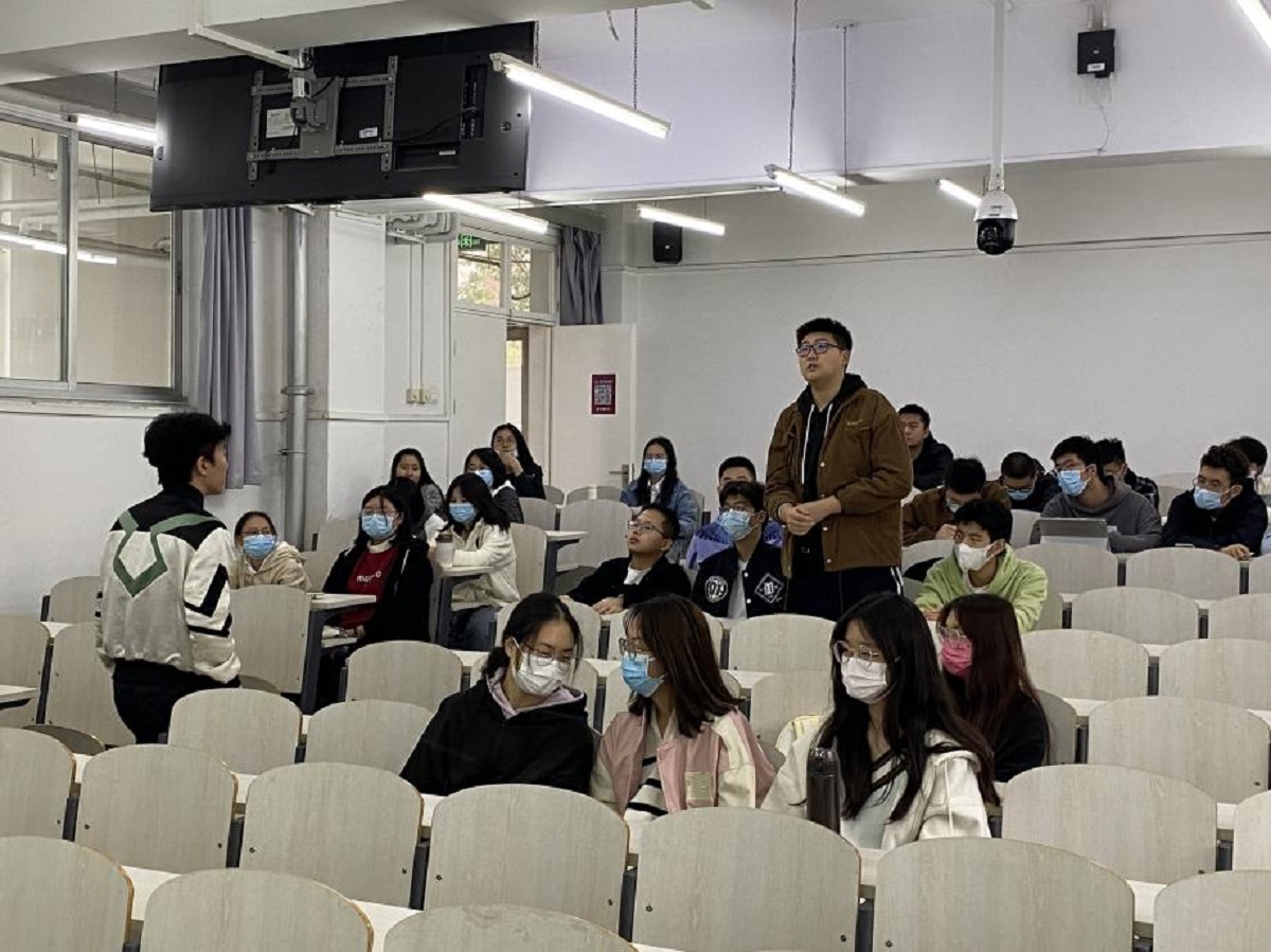 张新宇分享自身就业经验与成长感悟后,与同学们进行了积极的互动。多名同学积极主动与学长进行了交流,内容广泛,涉及创业经验、直播平台运作、顶流互联网平台的竞争、主流互联网软件的更新方向等等。与同学互动之余,张新宇对同学们的发展方向提出了建议,并鼓励同学们学习之余多与家长沟通,珍爱家人。