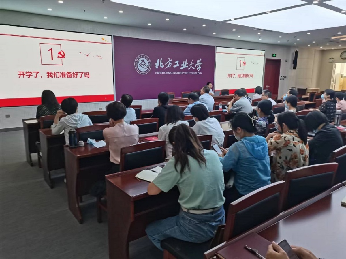 公司党委书记王伟宾首先以“开学了,我们准备好了”为切入,分析了2022年秋季学期师生入校所面临的新形势和新问题,借助教育学中态度转变的三个过程——“顺从”“认同”“内化”,进行逐一分析,号召全体老师要从“一棵树摇动一棵树,一朵云推动一朵云,一个灵魂唤醒另一个灵魂”的认识高度去关心关爱员工,与员工守望相助,共同成长。随后,他结合北京高校当前的疫情状况,深入分析了疫情所面临的复杂形势,要求教师要提高政治站位,深刻认识高校疫情防控的“高关注”“高风险”和“高难度”,提升疫情防控的自觉性和主动性,切实为维护高校一方平安作出自己应有的贡献。最后,他带领大家学习传达公司党委书记缪劲翔主讲的抗疫“大思政课”精神,解读了公司进一步加强开学初疫情防控有关工作通知的文件要求,从师生个人疫情防控要求到教职工应履行的疫情防控管理职责等方面进行明确,要求全体教师在疫情防控中务必做到“反应要讲速度”“管理要有精度”“纾解要有温度”“措施要有力度”。