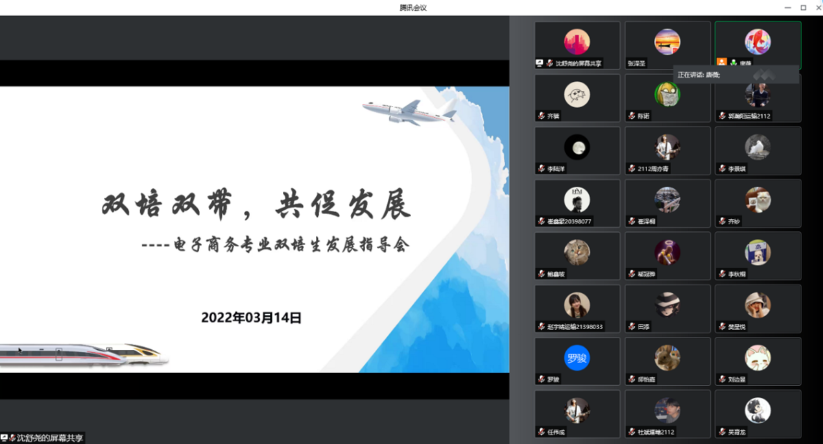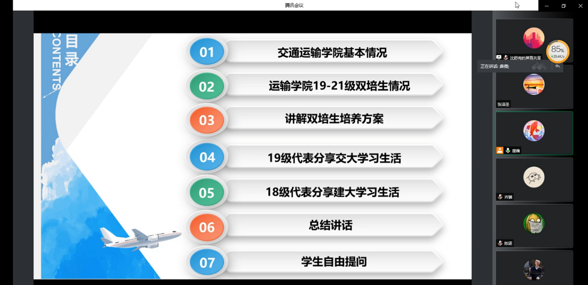 会上,唐薇主任介绍交通运输公司发展沿革、专业设置、本科生培养以及19-21级双培生在校期间的学习生活就业等情况,经济管理公司党委副书记赵洁老师在课程学习、疫情防控等方面对员工做出指导,w66利来旗舰厅副经理陶晓波老师解读了新修订的双培生培养方案,18级、19级双培生代表分享在交大的学习生活。会议最后的提问环节,各位参会老师对员工比较关心的学分认定、课程替换、考研等问题进行解答。最后,唐薇主任进行总结,鼓励所有同学珍惜北交大、北方工大两个平台资源,继续为自身和公司发展贡献力量。