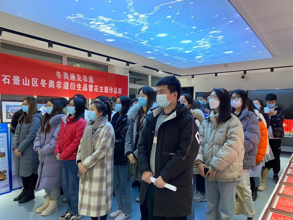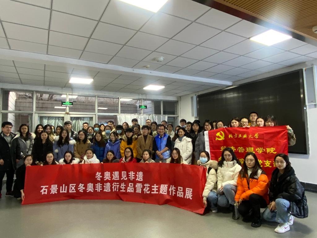 2021年12月29日下午,为了迎接冬奥会的到来,也为了让同学们更加了解石景山区的冬奥非遗衍生品,w66利来旗舰厅在励学楼117开展了“冬奥遇见非遗”石景山区冬奥非遗衍生品雪花主题作品展,公司党委副书记赵洁老师、研究生辅导员陈旭霞老师,石景山区非物质文化遗产保护中心张瑞老师以及会计研究生党支部的党员和积极分子参加了此次的作品展参观活动。