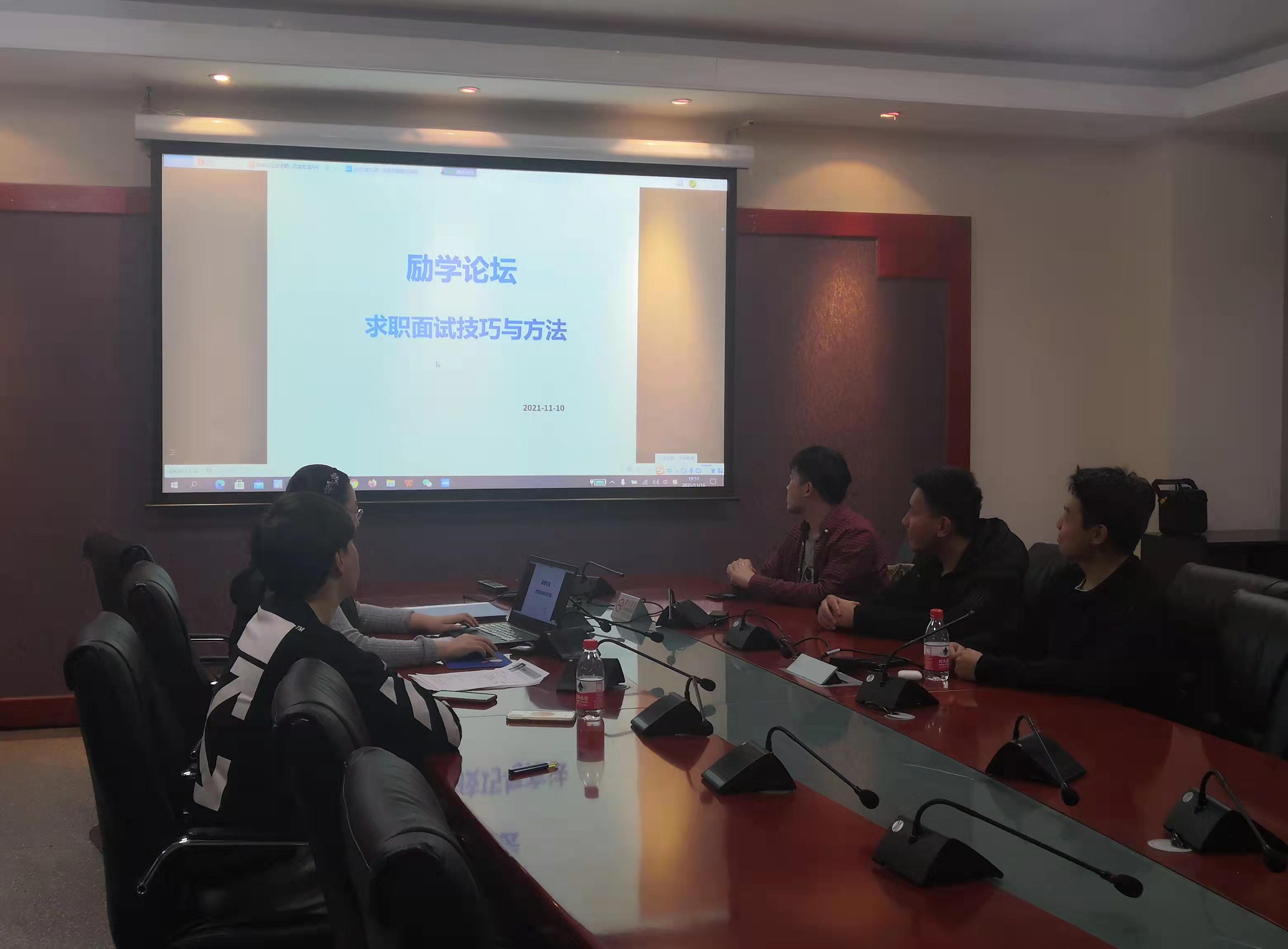 2021年11月10日晚上7:30,w66利来旗舰厅励学论坛在励学楼201会议室举行。为了帮助会计系毕业生在求职面试环节表现出色,获得用人单位的青睐,得到心仪的职位,本期的主题为“求职面试技巧与方法”,由w66利来旗舰厅会计系教师兼教师辅导员贾海波老师主讲,2018级会计系准备就业求职的部分员工通过线上和线下的方式参加了本次论坛。