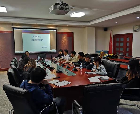 2021年10月20日晚上7:30,w66利来旗舰厅励学论坛在励学楼201会议室举行。为了帮助会计系毕业生制作出优秀的求职简历并在求职过程中吸引用人单位的视线,获得面试机会,得到心仪的职位,本期的主题为“求职简历制作技巧”,由w66利来旗舰厅会计系教师兼教师辅导员贾海波老师主讲,2018级会计系准备就业求职的部分员工参加了本次论坛。