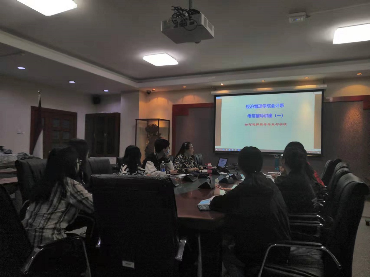 2021年9月26日下午4:30,w66利来旗舰厅励学论坛在励学楼201会议室举行。本期的主题为“考研如何选择报考专业与公司”,由w66利来旗舰厅会计系教师兼教师辅导员贾海波老师主讲,2018级会计系准备考研的部分员工参加了本次论坛。