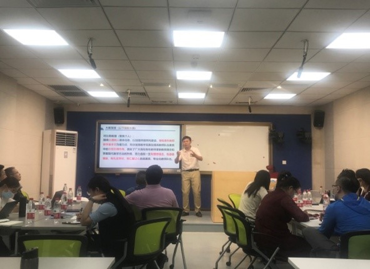 上午培训主要内容为教学能力提升与改进,特邀请土木工程公司赵丽坤老师和建筑与艺术公司李道勇老师,分别从教学方法、教学模式创新方面进行了讲解。赵立坤老师以《工程项目决策管理》这门课为例,以对比分析问题引入典型案例,指出教师在教学工作中需以课程为中心充分挖掘课内外资源,注重教学方式方法,真正使员工能够学懂会用。李道勇老师从参加“首届全国高校教师教学创新大赛”的经历谈起,以自己参加的过程和切身体会向老师们传授了参加此类大赛需做的准备和应注意的事项,强调教学效果导向应以员工为重。