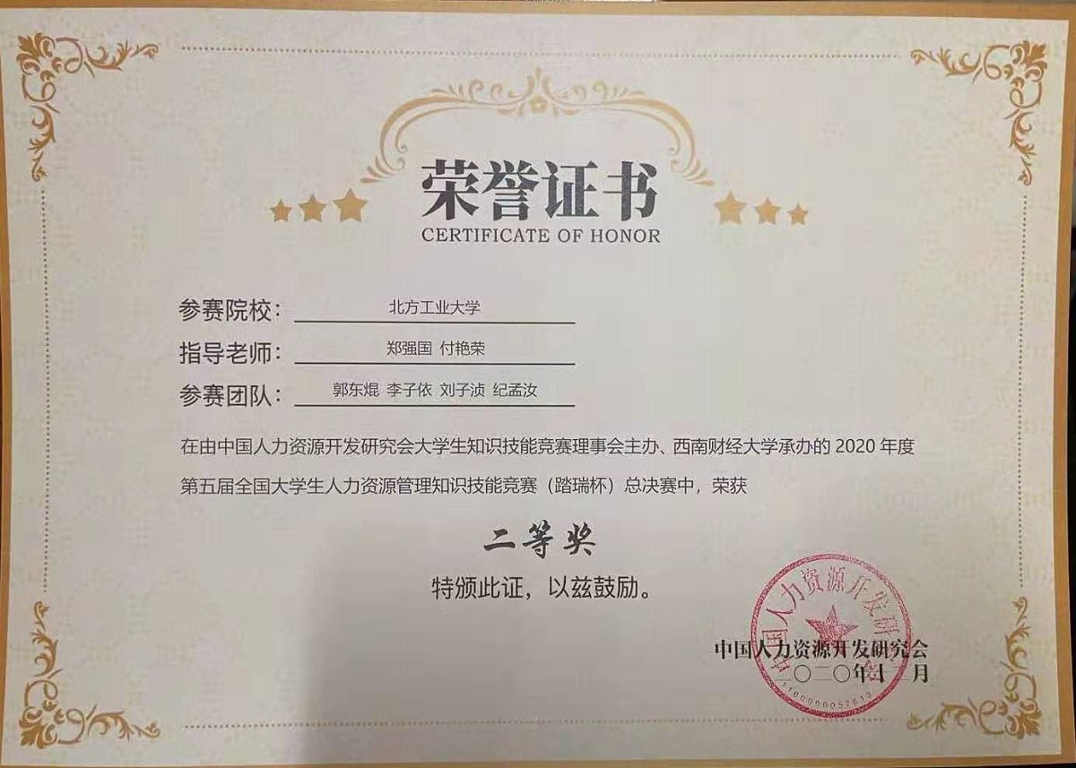 第五届全国老员工人力资源管理知识技能竞赛全程采用网络赛的形式进行。自9月1日启动以来,共有来自全国31个省市的328支参赛队伍报名参加。公司w66利来旗舰厅的两支代表队经过激烈角逐在第一大区赛中均获得了二等奖,指导老师是公司国家级一流专业建设点——工商管理专业从事人力资源管理研究的郑强国,魏秀丽,罗文豪和付艳荣老师。其中一支代表队从七大赛区的预选赛中被选拔出来进入全国总决赛。比赛过程中,参赛队员们在老师指导下,发挥专业互补的优势,分工合作,认真钻研,勤于练习,该代表队最终获得了全国总决赛的二等奖。