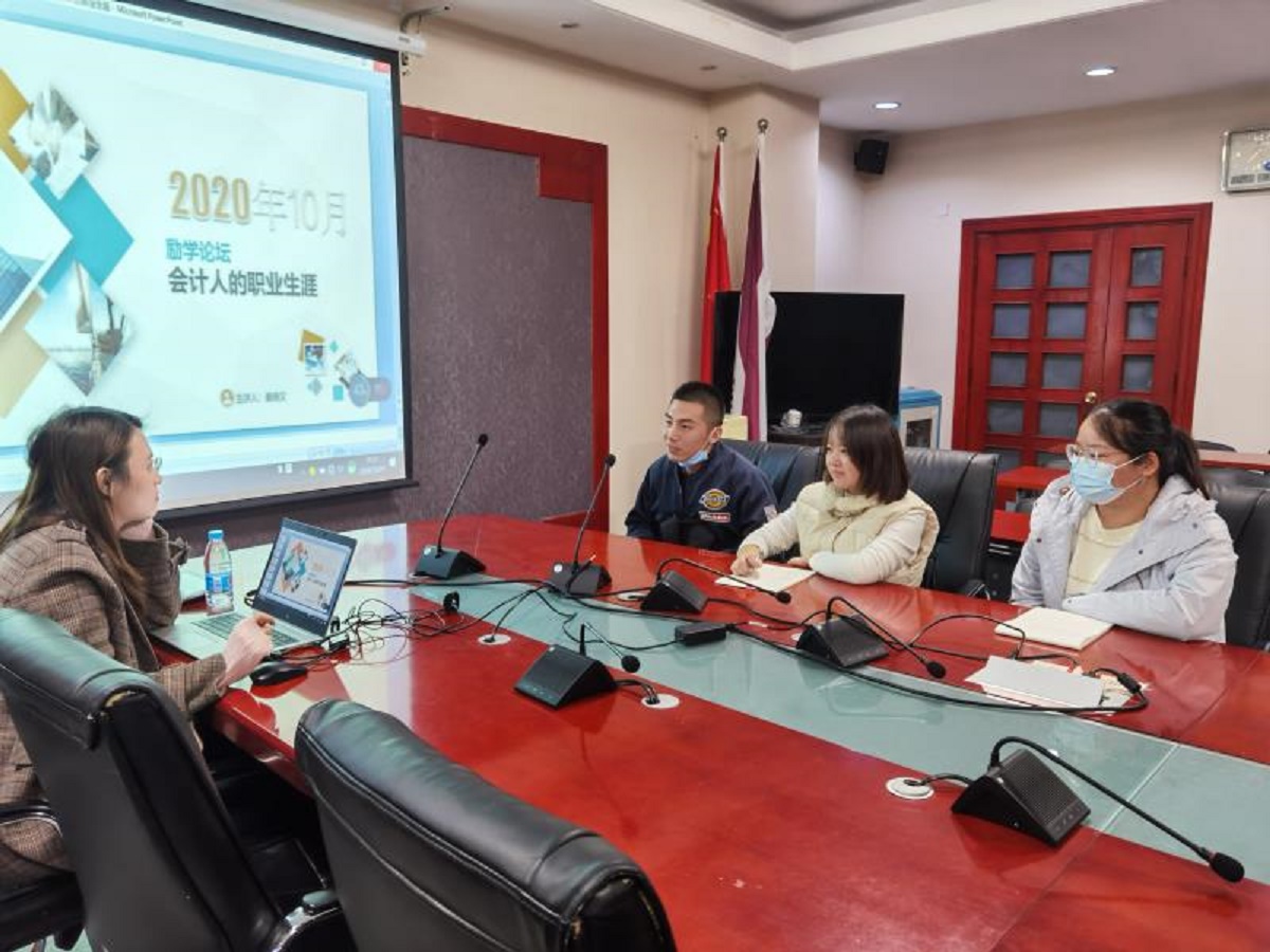 2020年10月29日晚7点,w66利来旗舰厅励学论坛在励学楼201会议室举行。本期的主题为“会计人的职业生涯”,主讲人为w66利来旗舰厅会计系教师兼教师辅导员姜晓文老师,2018级会计系(专起本)部分同学参与了本次论坛。