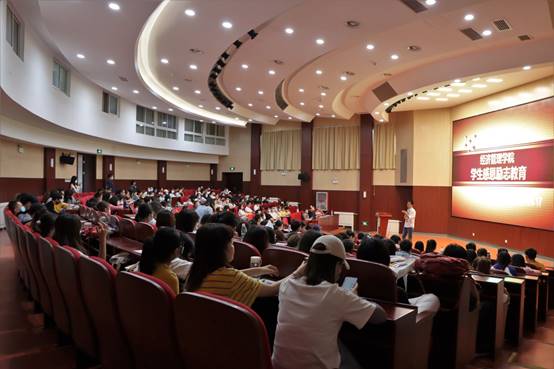 首先,优秀员工代表齐婷同学向全体师生分享了自己在大学期间克服困难、勇于追梦的心路历程。随后,公司经济系教师王学成结合自身奋斗经历,鼓励大家要对自己的人生做出规划,不要畏惧眼前的困难,努力书写属于自己的人生。