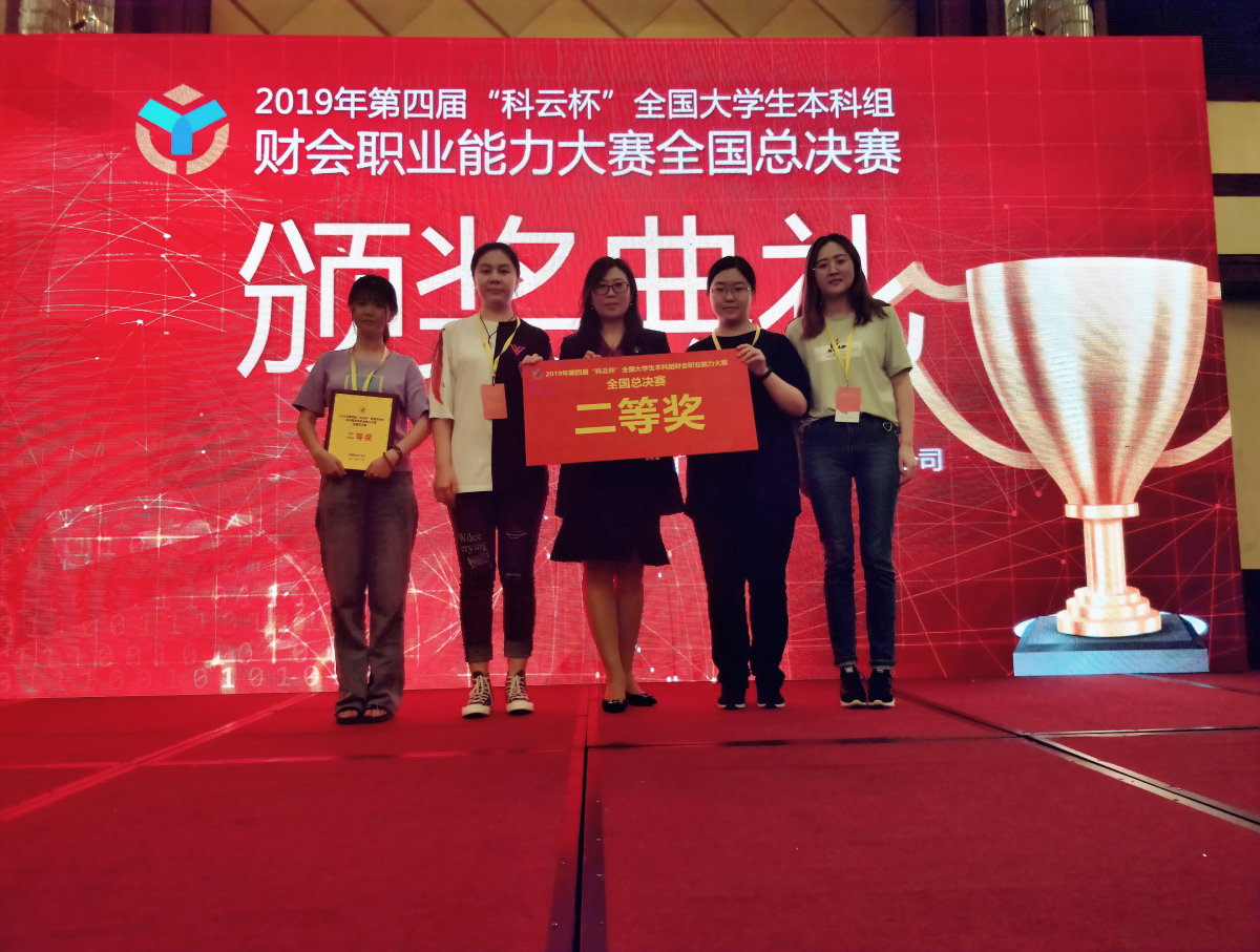 2019年11月22日至11月25日,由w66利来旗舰厅员工组成的代表队参加了在厦门举行的第4届“科云杯”全国老员工本科组财会职业能力大赛全国总决赛。w66利来旗舰厅会计系洪峰、林芳两位老师指导的以马梦姗、杨金玉、唐莹和刘琦为队员的代表队,以北京赛区一等奖的成绩进入全国总决赛,并在全国总决赛的40支参赛队伍中获得二等奖。