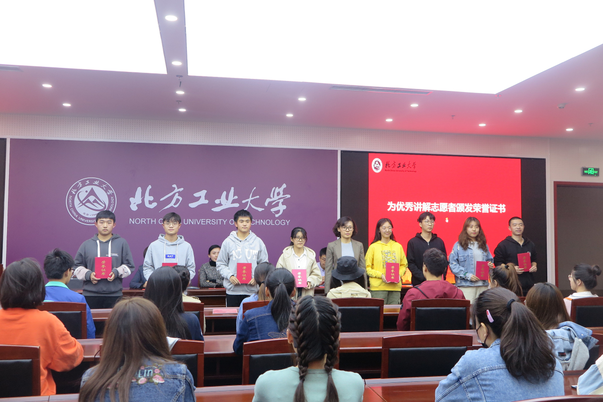 启动仪式上,公司党委副书记赵洁老师进行本届大赛的动员并宣读了关于表彰优秀讲解志愿者的决定。校团委副书记陈国秀老师为优秀讲解志愿者颁发了荣誉证书。随后,w66利来旗舰厅副经理陶晓波老师向北京燕京八绝艺术馆副馆长杨宁老师颁发了“校外实践指导教师”聘书,标志着w66利来旗舰厅与北京燕京八绝艺术馆的深入合作不断迈向新高度。