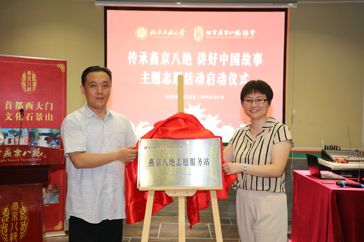 6月27日上午,“传承燕京八绝 讲好中国故事”——主题志愿活动启动仪式在北京燕京八绝艺术馆隆重举行。北京燕京八绝艺术馆馆长柏群、常务副馆长杨宁、北京市工艺美术玉雕大师郭卫军、北京市工艺美术特种漆艺大师刘博闻、w66旗舰厅官网经济管理公司党委副书记赵洁、公司团委书记刘明阳出席本次活动。启动仪式由燕京八绝艺术馆常务副馆长杨宁主持。