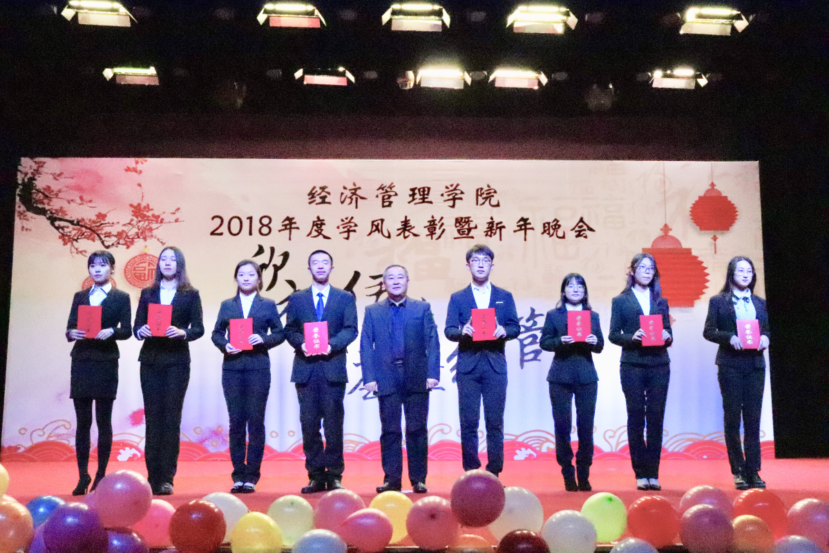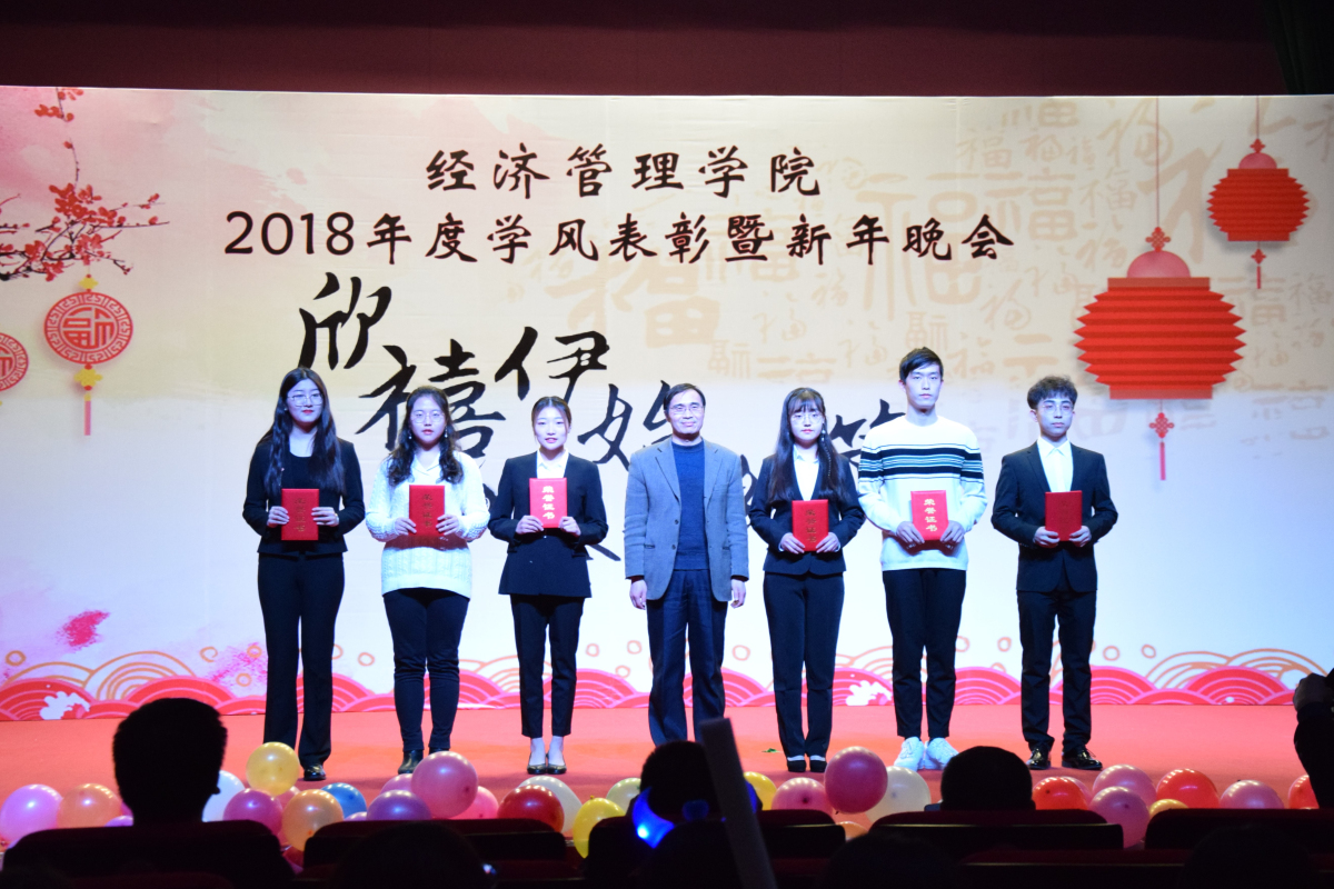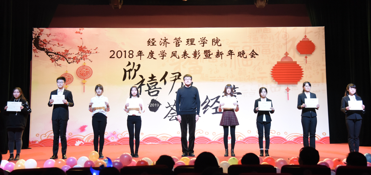 2018年12月18日晚,w66利来旗舰厅在图书馆报告厅举办“欣禧伊始 荟萃经管”2018年度学风表彰暨新年晚会。员工工作部部长高国伟、校团委书记何有华、员工工作部副部长赵帅、w66利来旗舰厅全体领导班子成员、各系主任、班导师、辅导员及600余名同学共同参加了本次晚会。