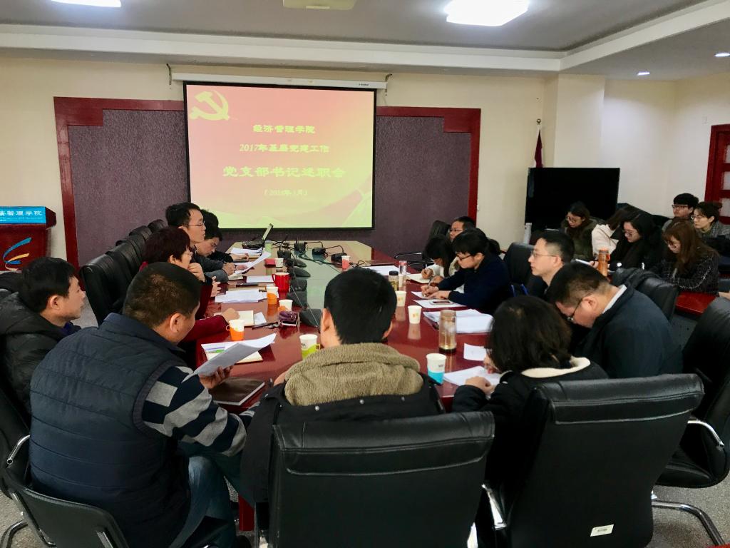 3月9日上午,w66利来旗舰厅在励学楼201会议室召开2017年基层党建工作述职会。公司全体党委委员、各党支部书记及部分党员代表参加了会议,组织部钱昌照同志出席会议。会议由公司党委书记谢朝阳主持。