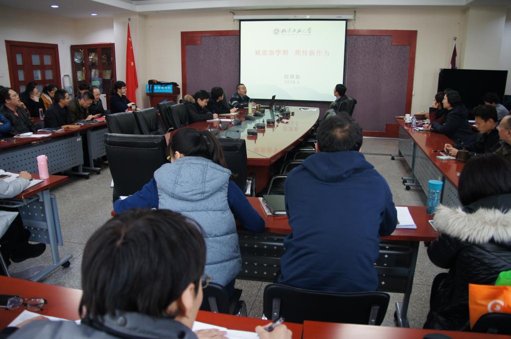 会上,赵继新经理做了题为“赋能新学期、期待新作为”的报告。报告中,赵老师结合公司第八次党代会提出的“四大工程”和“四大任务”,梳理了公司的相关工作。他希望大家围绕服务北京、服务京津冀地区、服务雄安新区建设来谋划自己的工作,找准定位,寻求差异化发展。赵经理向全体老师通报了公司2018年的重点工作,在公司的总体指导下,公司将以高标准完成本科审核评估、学位点自评估以及博士授权支撑团队建设三项工作。