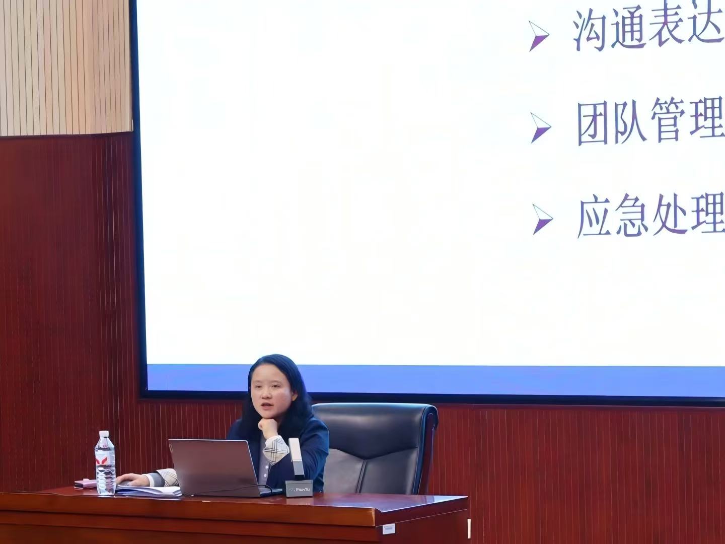 培训会上,王老师围绕员工干部的角色认知、素质与能力培养与同学们深入交流。她强调,员工干部是连接公司与同学的桥梁纽带,要平衡服务与管理双重职责,牢记“服务同学、服务公司、服务公司”的初心使命。员工干部应着力提升思想素质、道德修养与实践创新能力,不断夯实基础技能,增强沟通协调、组织管理与心理调适能力。