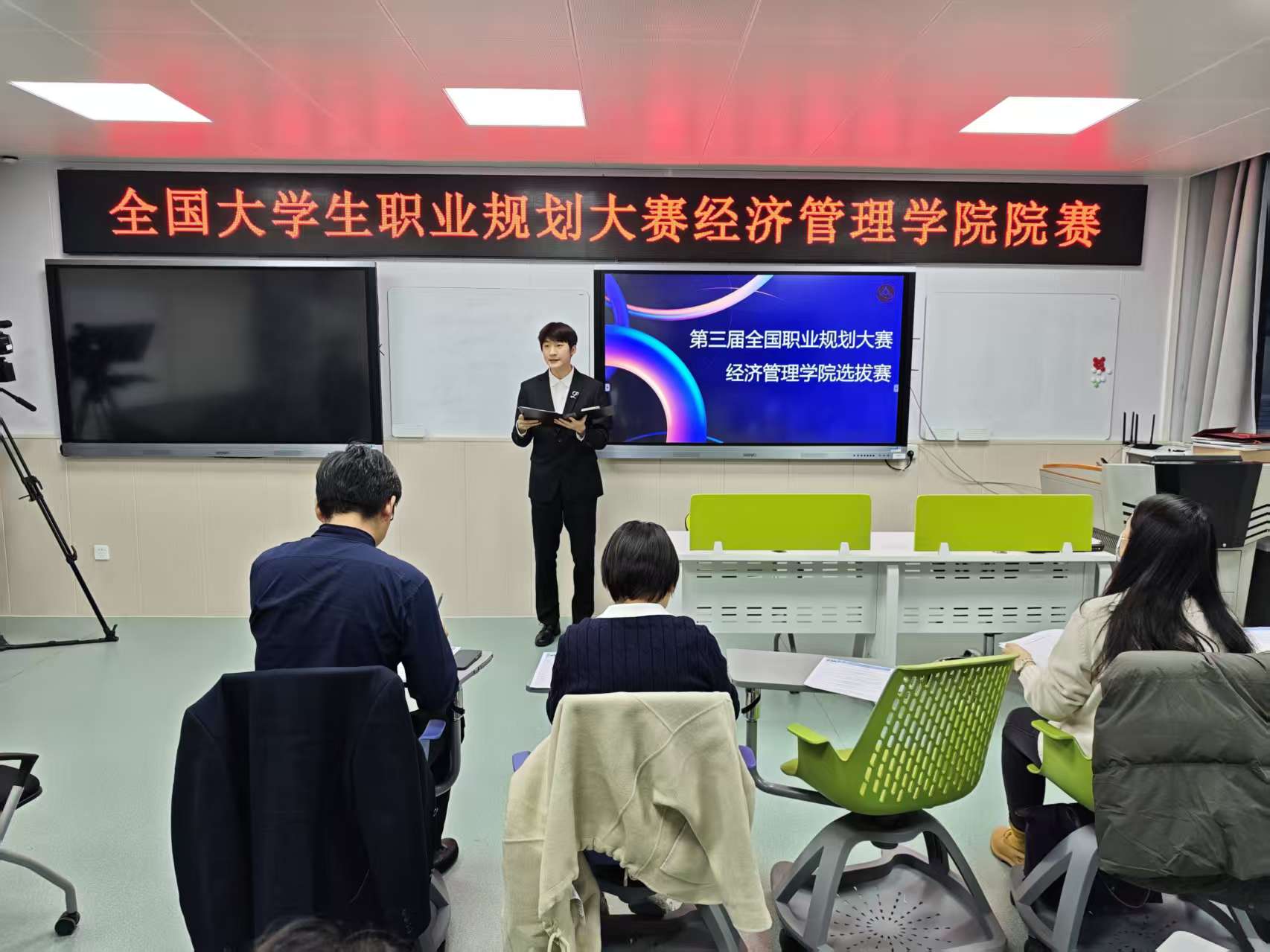 为引导员工树立正确的成才观、职业观与就业观,提升职业规划意识与能力,11月20日,w66利来旗舰厅在励学楼136举办第三届全国老员工职业规划大赛院内选拔赛。北京宇乐树科技有限公司联合创始人、NCDA国际生涯咨询师史敏思,北京易标智科技有限公司总经理,资深大数据领域专家黄以卫博士,以及w66利来旗舰厅朱嫣婷、刘燕君老师担任决赛评委。