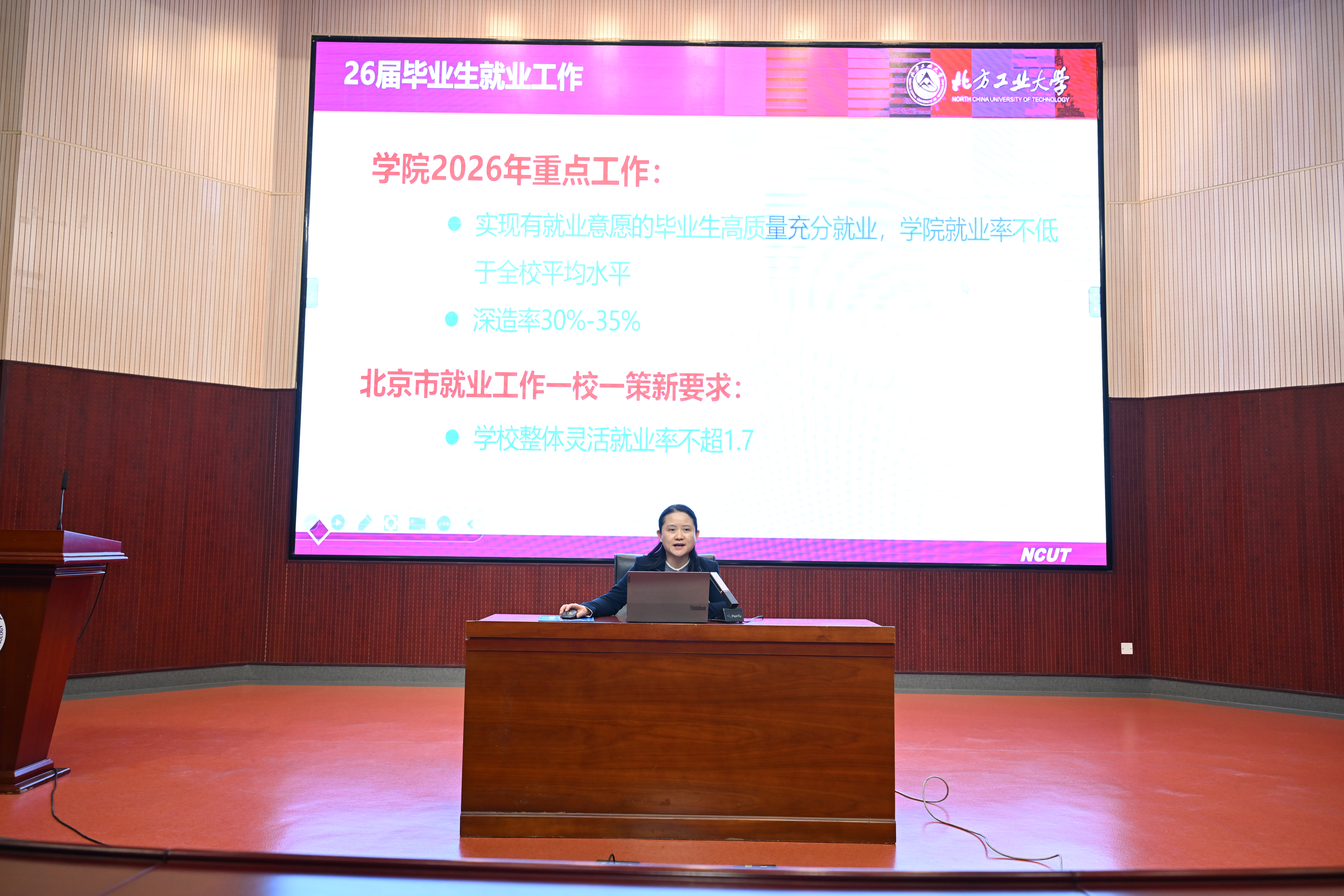 会上,赵继新经理全面回顾了公司“十四五”期间在党建、人才培养、教学工作、团队建设、科研业绩、社会服务、团队队伍建设、国际化发展等八个方面取得的长足进步,客观分析了当前发展面临的机遇与挑战。围绕公司“十五五”规划及今年重点工作,梳理了2026年公司工作的总体思路和重点任务,部署了筹备建校80周年活动、提升治理水平、深化课程思政与人才培养、强化科研智库建设、优化学科布局、抓实就业、加快国际化建设、建强团队队伍等任务。号召全体教师要以公司“十五五”规划为指引,以“转观念、重水平、强应用”为导向,抢抓发展机遇,主动担当作为,在新起点上推动公司“4121”转型发展取得实质进展。