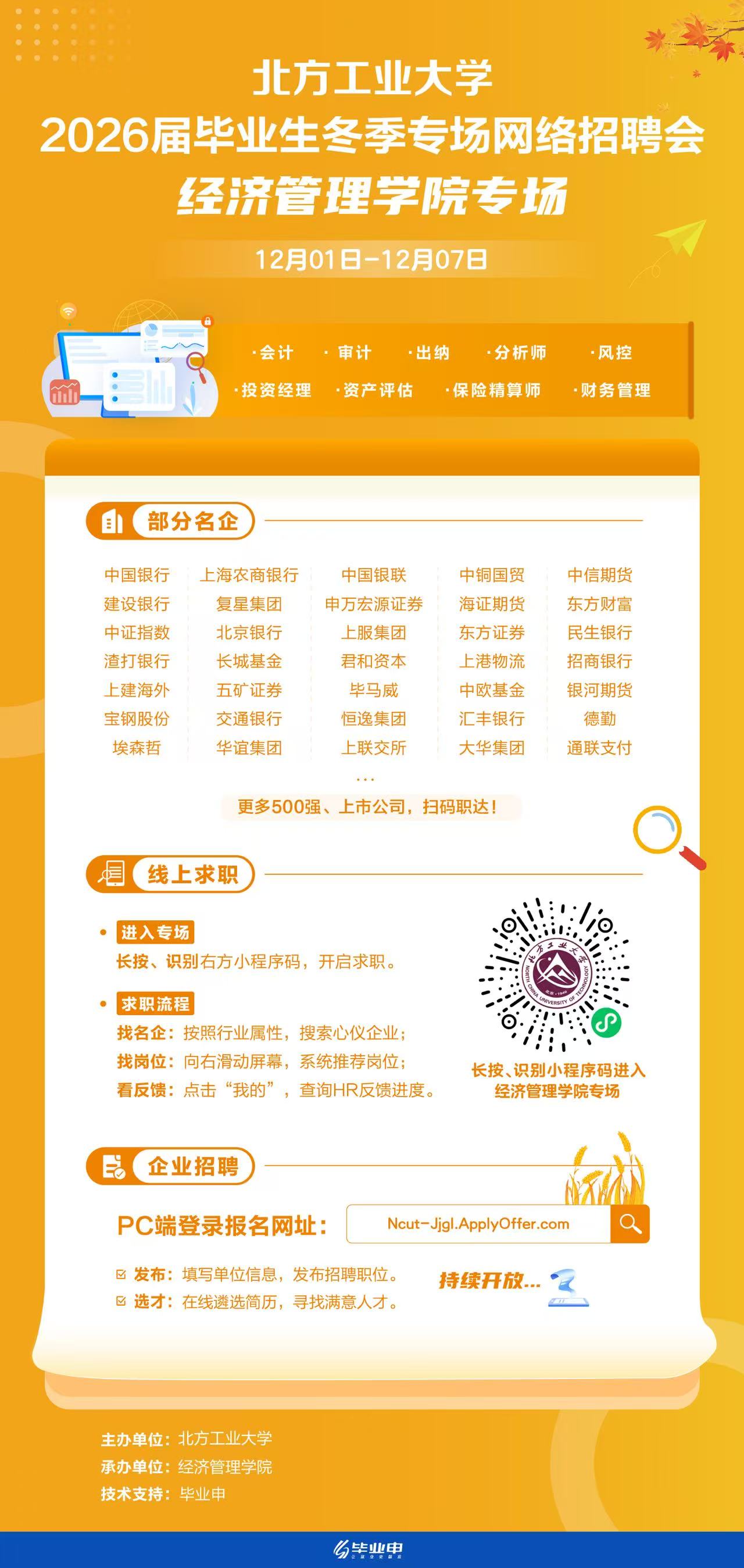 为贯彻落实教育部关于2026届毕业生就业工作的总体部署,深入开展就业育人工作,持续推进毕业生与用人单位精准供需对接,为公司毕业生高质量就业拓宽渠道,现决定举办专场网络招聘活动。