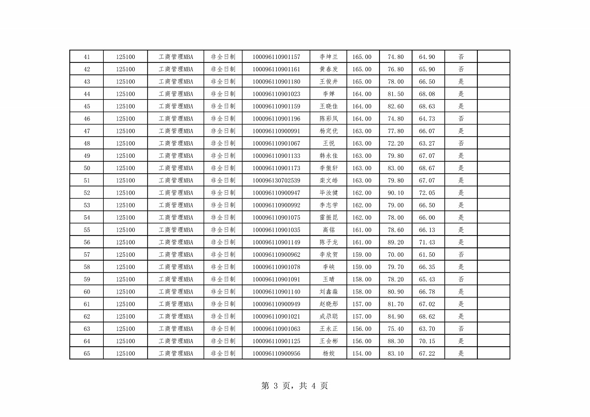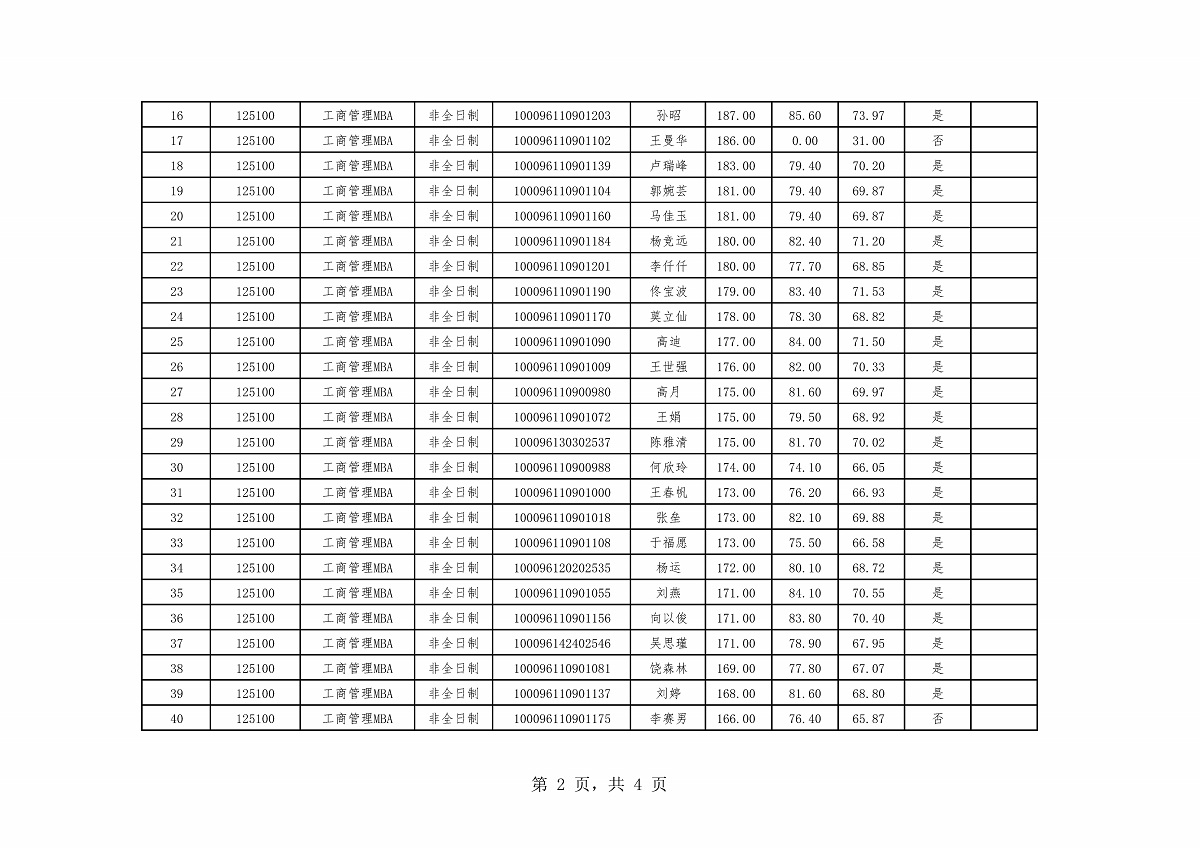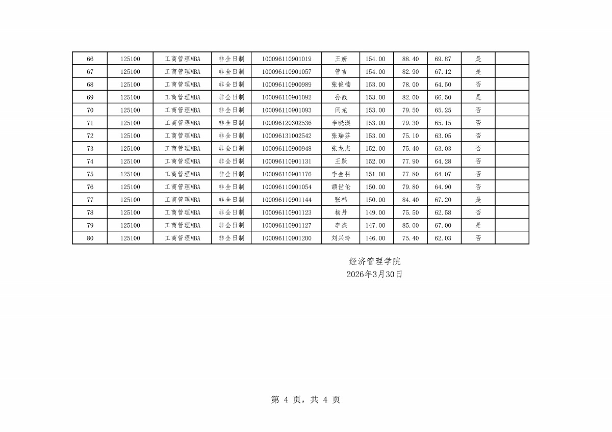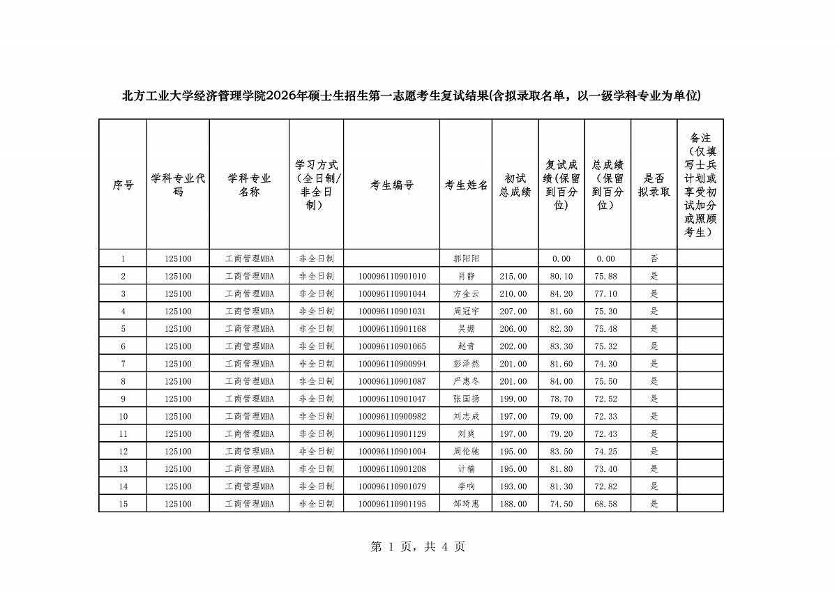 w66利来旗舰厅2026年硕士生招生第一志愿考生复试结果——工商管理MBA(非全日制)