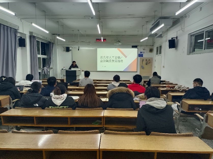 报告结合《产业经济学》课程产教融合教学要求、员工的专业情况、人工智能产业的发展趋势以及员工未来的就业职业选择,主要介绍了人工智能产业主要细分赛道、人工智能产业投融资趋势及格局、人工智能产业细分赛道融资活跃度、人工智能产业细分赛道资本吸引能力、人工智能产业投融资新风向等内容。最后提问讨论环节,马兵先生与同学们就金融专业未来的就业前景,金融机构(证券公司、基金公司等)应届生进入门槛、同学们未来的职场选择与提前准备等方面进行了深入充分的交流。