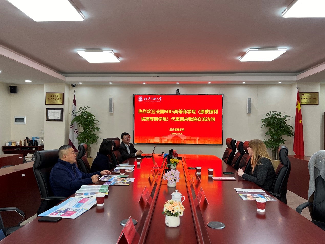 根据公司本科公司产品工作会部署安排,推进公司“三个1”教育国际化建设工作,11月5日,国际公司邀请法国MBS高等商公司(原蒙彼利埃高等商公司)国际招生主任、公司董事会执行委员会成员Audrey Hodicq一行两人来经济与管理公司交流,w66利来旗舰厅经理赵继新教授在励学楼201会议室会见了来访嘉宾。