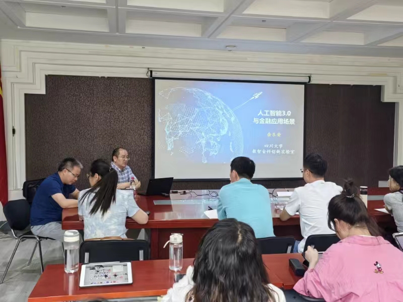 6月5日下午,应w66利来旗舰厅邀请,四川大学商公司特聘教授余乐安来校进行讲学,在励学楼301会议室为公司师生作了题为“人工智能3.0与金融应用场景”的学术报告。报告会由经济系主任王书平教授主持。