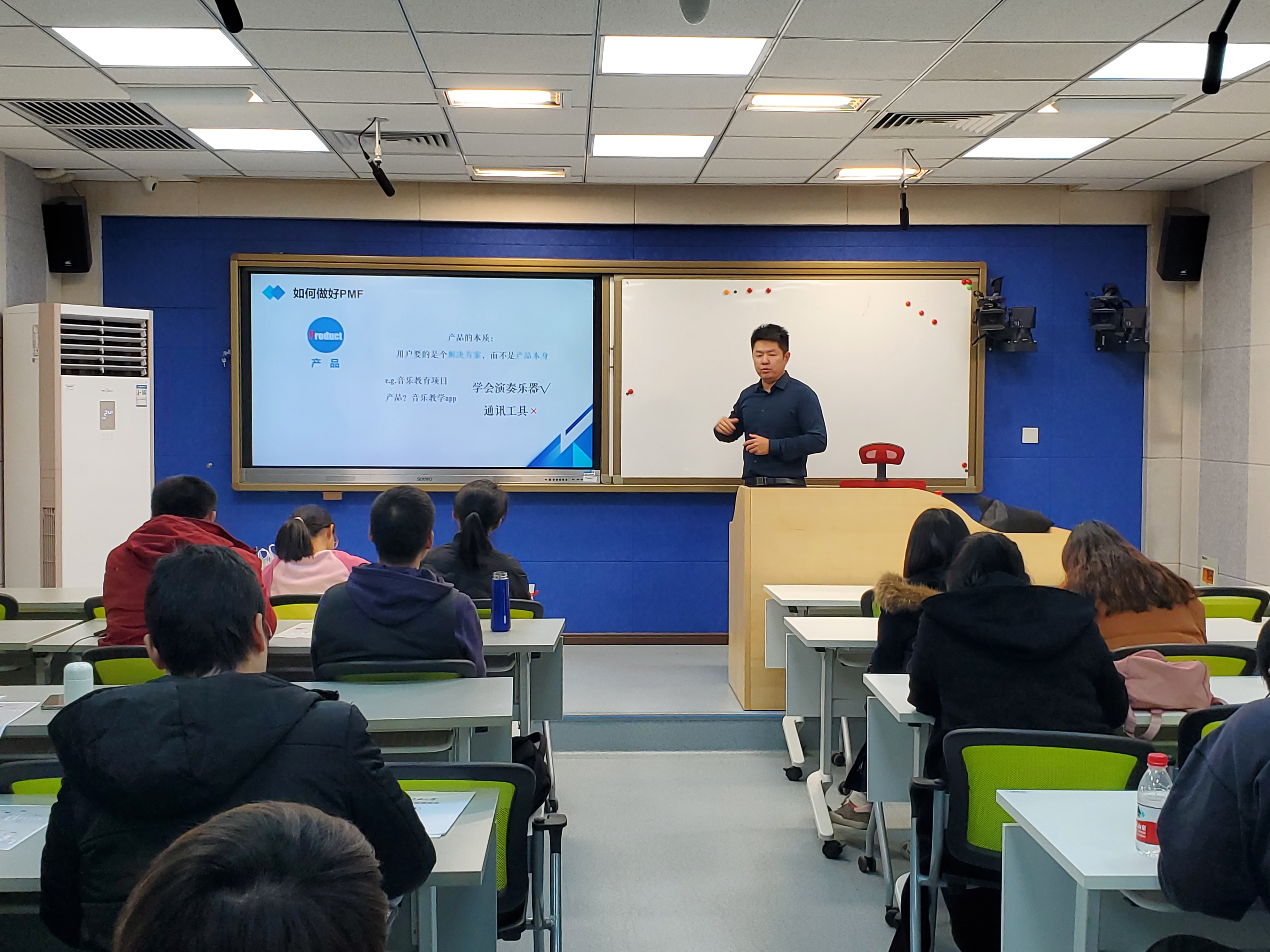 任毅老师首先对创新创业的重要性和三大创业理论进行了介绍,并结合数字经济时代的变化分析了创新创业的热点与趋势。随后结合创业实例和精益创业概念地图,引导在座MBA研究生研判创业方向,发现产品和市场中的契合点,寻找痛点问题的解决方案。任毅老师的讲座紧跟行业发展前沿,深入创新创业实务,对创业项目的选择和推进有很强的指导作用。在交流环节,师生就养老产业、在线教育、中药材等领域内的创业构想与任老师进行了充分沟通,为后续参加创新创业竞赛做好项目准备。