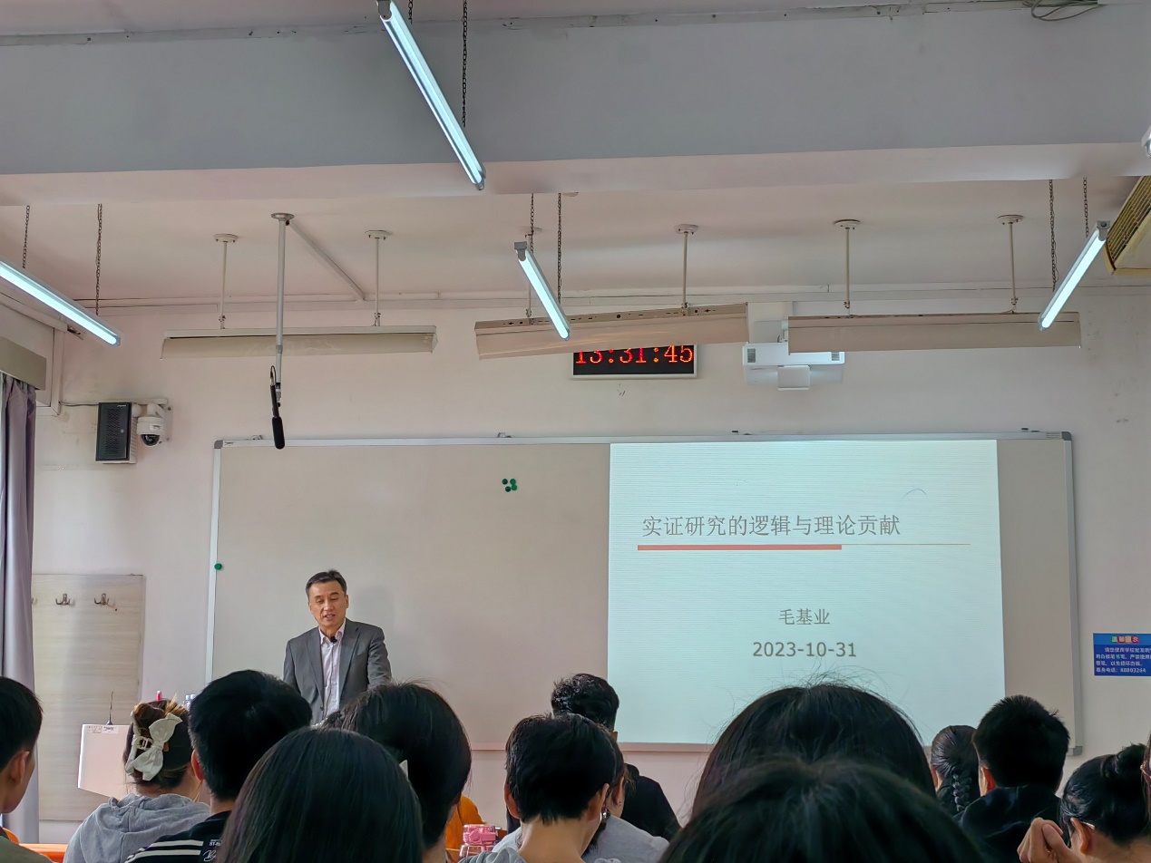 10月31日,w66利来旗舰厅第11期“励学讲堂”活动在励学楼223顺利举行。原中国人民大学商公司经理毛基业教授受邀为公司师生做了主题为“实证研究的逻辑与理论贡献”的学术讲座,w66利来旗舰厅程晋烽副教授主持本次讲座。