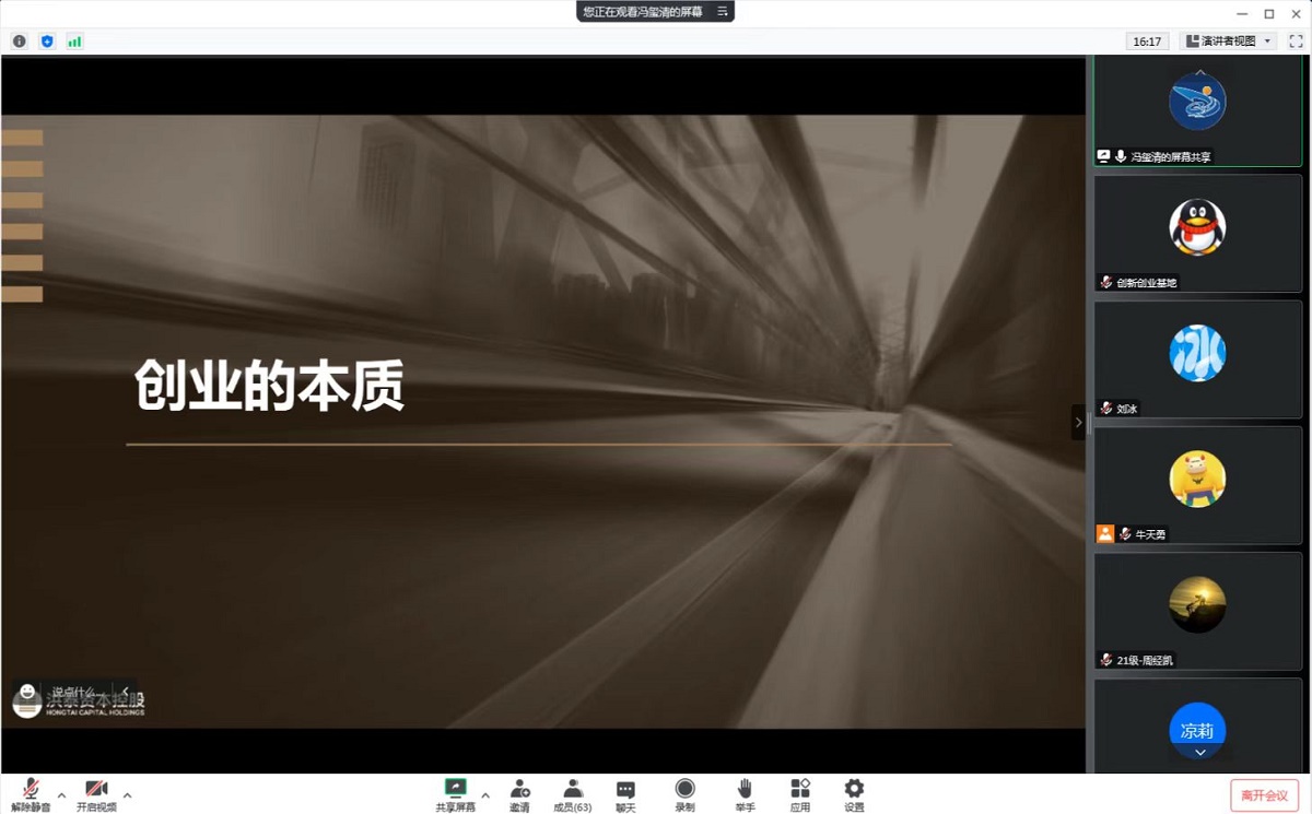 11月26日上午,w66利来旗舰厅通过腾讯会议在线举办了“创新创业导航”系列讲座第三讲。洪泰智造合伙人兼中国国际“互联网+”老员工创新创业大赛、“挑战杯”系列竞赛总决赛评委冯玺清先生以“创业大赛优胜指南”为题与公司八十余名师生开展了在线报告与交流。讲座由w66利来旗舰厅创新创业基地刘冰副教授主持。