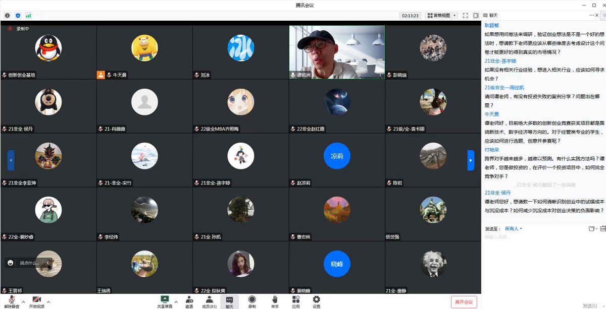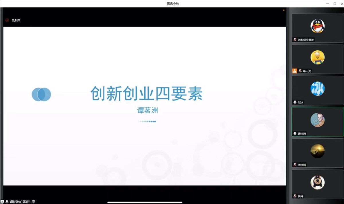 11月19日上午,w66利来旗舰厅通过腾讯会议在线举办了“创新创业导航”系列讲座第二讲。投资人兼中国“互联网+”老员工创新创业大赛历届评审专家谭茗洲先生以“创新创业四要素”为题与公司八十余名师生开展了在线报告与交流。讲座由w66利来旗舰厅创新创业基地刘冰副教授主持。