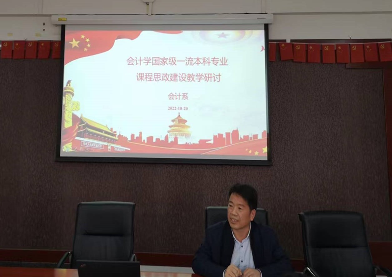 会议由会计系主任王志亮教授主持。他系统回顾了2020年会计学专业被评为国家级一流本科专业建设点以来,会计系积极落实公司公司党委对课程思政建设工作的统一安排部署,坚持立德树人初心,牢记为党育人、为国育才使命,以守正创新、与时俱进、求真务实的工作态度,深挖会计学专业课程的思政元素,在课程思政建设方面所做的教学探索以及取得的代表性教学成果。研讨交流中强调,要充分利用课堂教学这个“主渠道”,找准课程思政与会计公司产品的结合点,在教书育人、传道授业的同时,注重员工价值观的塑造,为培养德才兼备的高素质会计专业人才培根铸魂、固本培元。