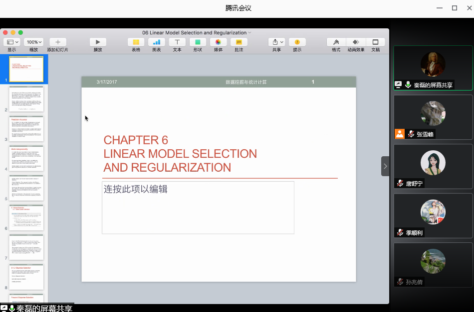 6月19日下午,应w66利来旗舰厅邀请,对外经贸大学统计公司秦磊副教授通过腾讯会议APP为公司师生作了题为“线性模型选择和规则化方法”的线上学术报告。报告会由经济系张雪峰副教授主持,经济系吴振信教授、杨汀博士及经济研研究生参会。