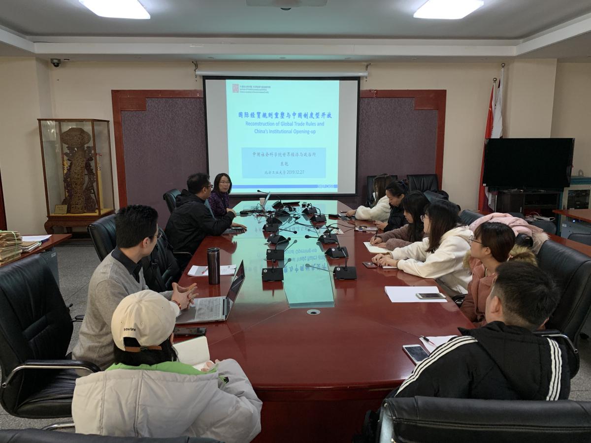 12月27日,应w66利来旗舰厅邀请,中国社会科公司世界经济与政治研究所东艳研究员为经济系师生作了主题为《国际经贸规则重塑与中国制度型开放》的讲座。讲座由经济系主任孙强主持,经济系教师和研究生、本科生参与听讲。