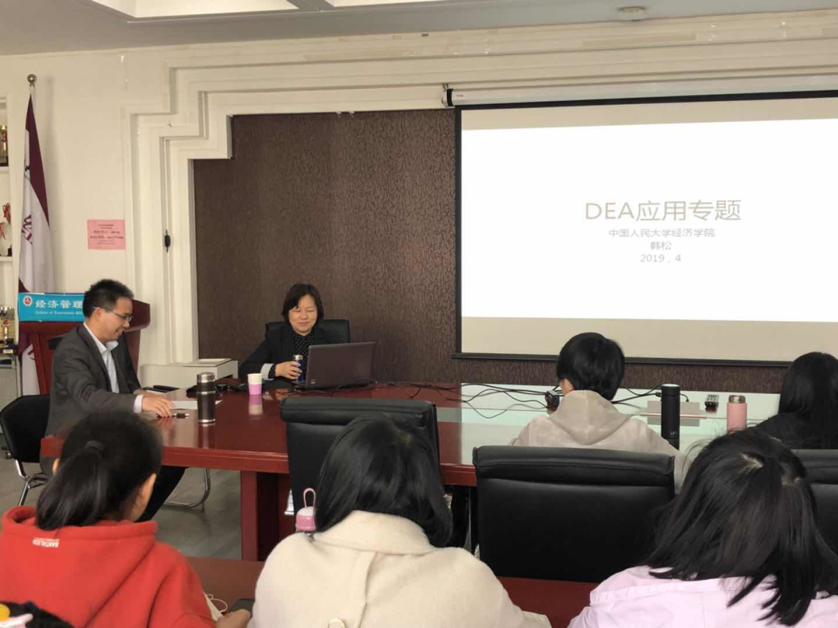 4月12日下午,应w66利来旗舰厅邀请,中国人民大学经济公司韩松教授在励学楼301会议室为师生作了题为“DEA方法应用专题”的学术报告。报告会由经济系王书平副教授主持。