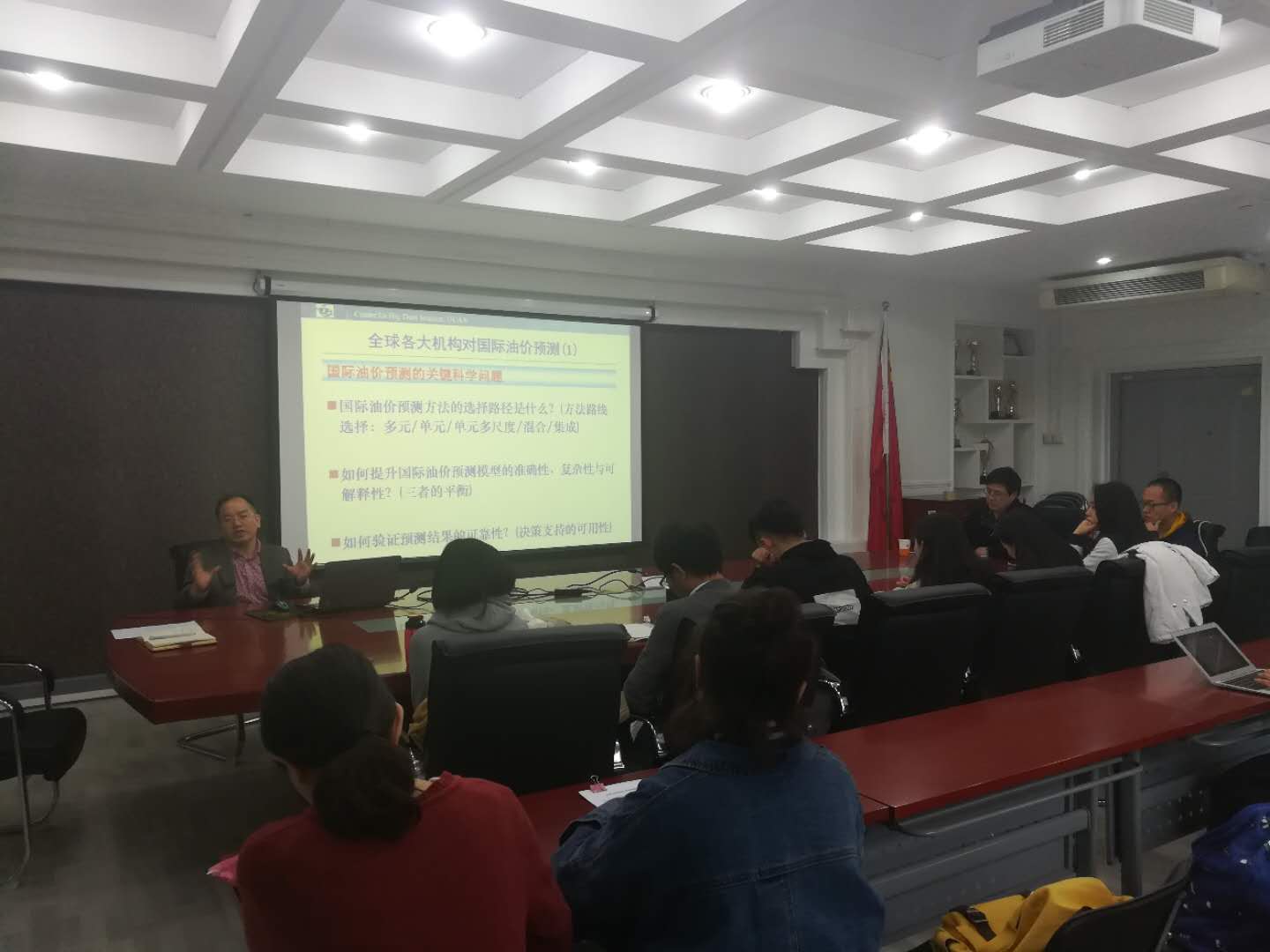 本报告主要讲述国际油价预测的最新进展。报告首先从顶天立地的角度出发,分析国际油价预测的科学意义与实际价值。其次,从预测科学学科发展角度出发,介绍油价预测的国际主流预测理论与方法,并在此基础上提出新的预测方法论。再次,基于相关预测方法进行实证分析,并与国际主流机构预测进行对比分析。最后,报告结合实证对比分析,给出国际油价预测的最新研究成果与同行评价。余乐安教授还就师生提出的问题进行了交流讨论。