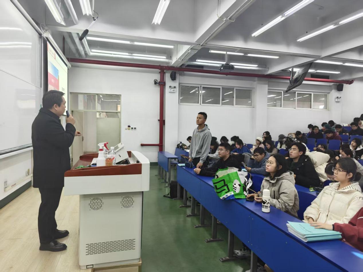 11月21日,w66利来旗舰厅“企业家进课堂”系列活动在浩学楼东 501 教室举行。活动特邀深圳天和双力物流自动化设备有限公司副总裁兼营销事业部总经理程军正担任主讲嘉宾,为2025级工商管理专业本科生带来了一堂主题鲜明、内容前沿的课程。