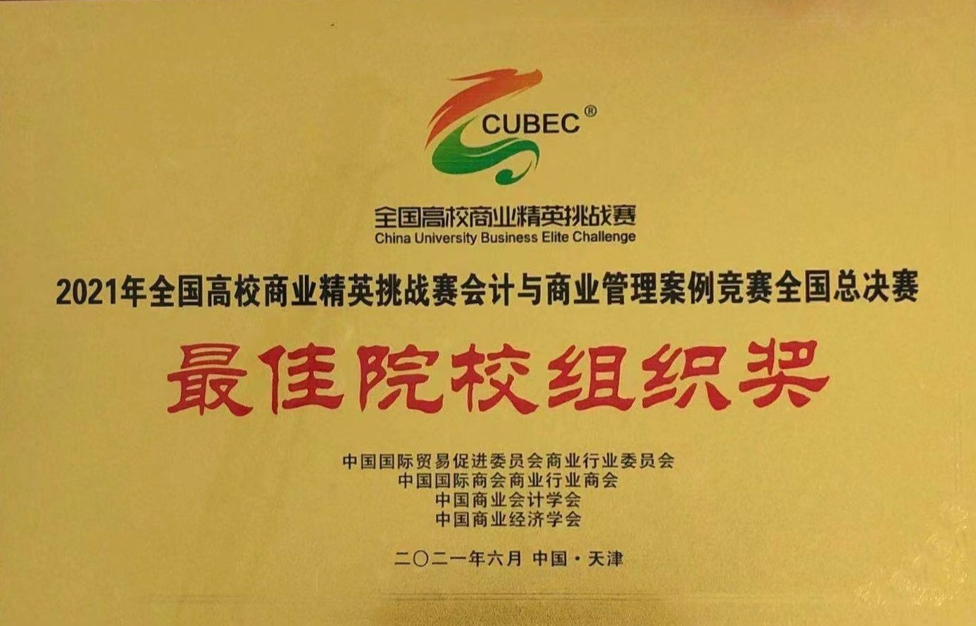 2021年全国高校商业精英挑战赛 会计与商业管理案例竞赛全国总决赛最佳院校组织奖 |