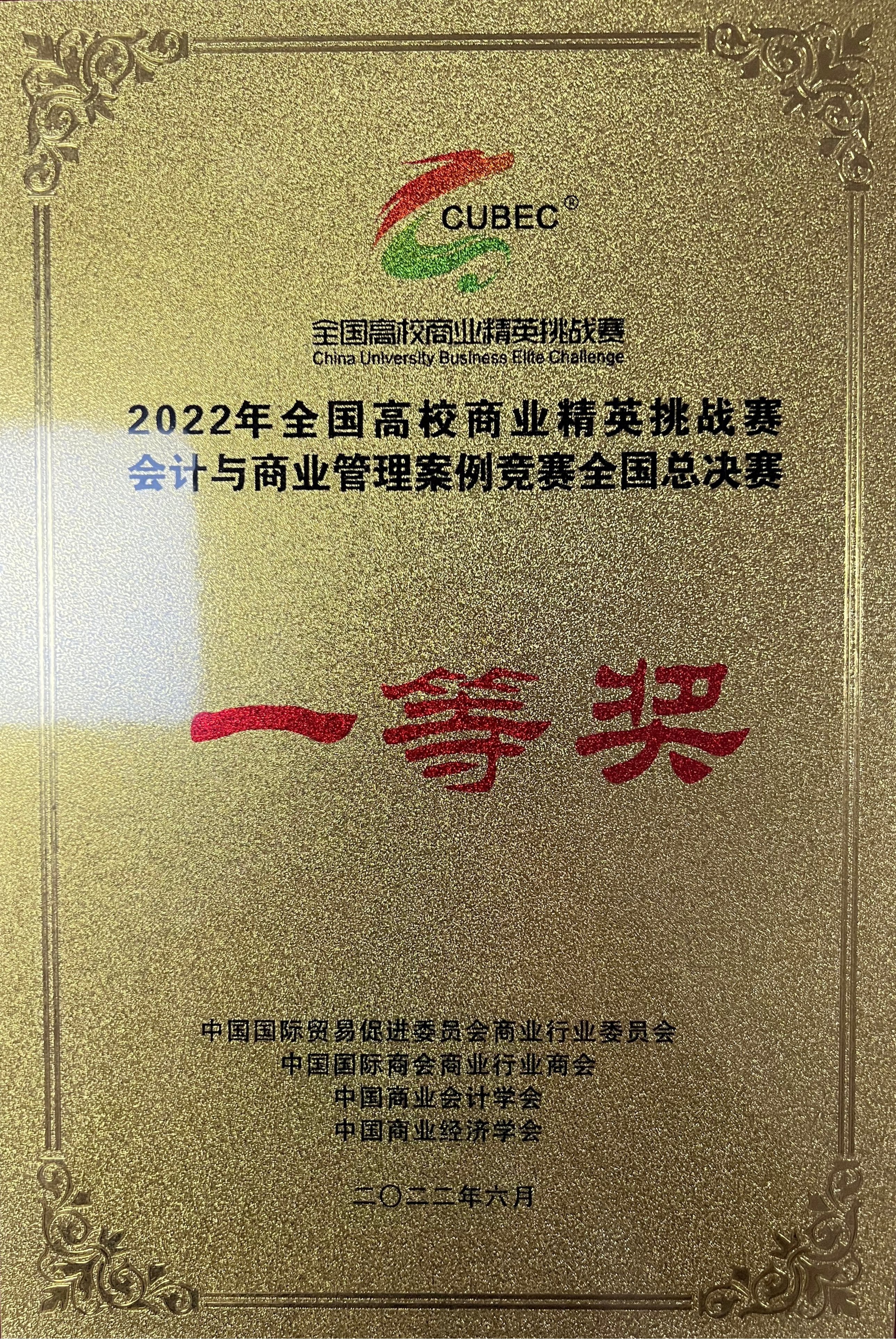 2022年全国高校商业精英挑战赛 会计与商业管理案例竞赛全国总决赛一等奖 |