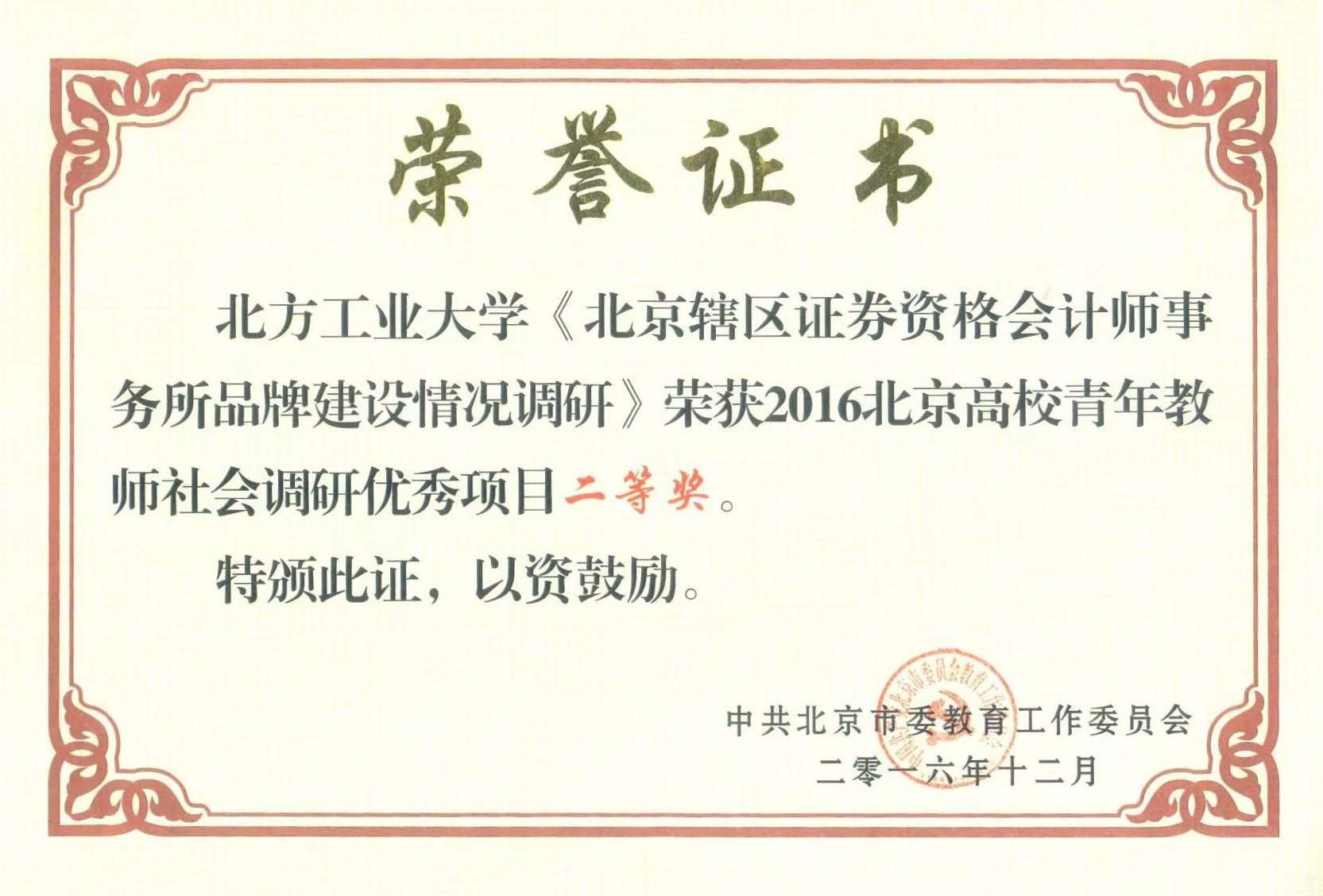 2016年,公司会计学专业在北京市高校专业评估中名列市属高校第3位。