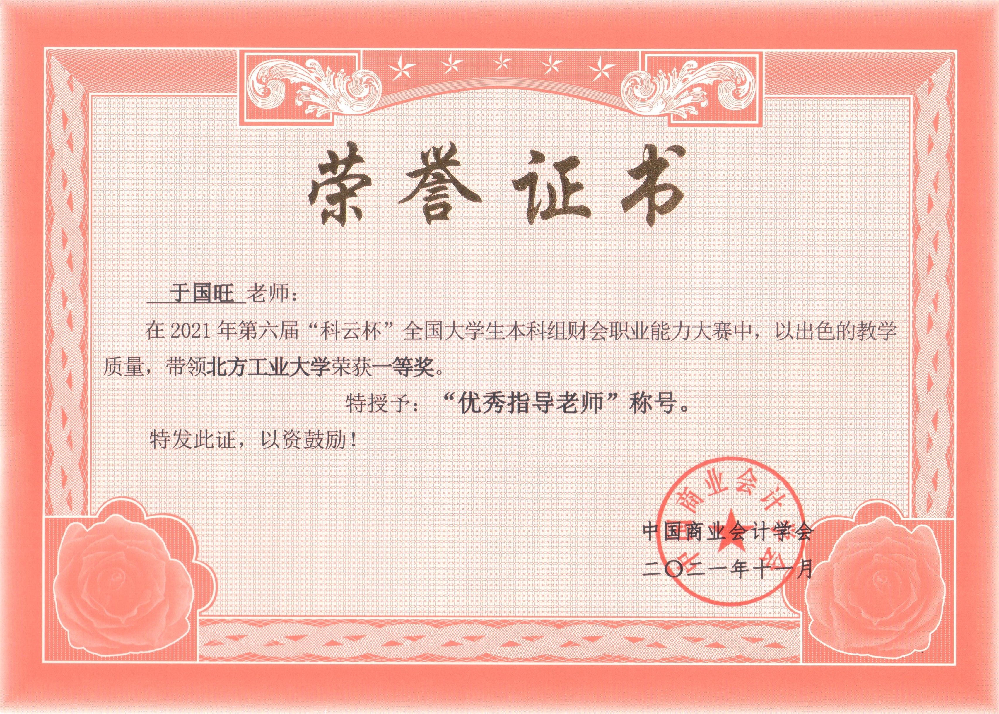 2021科云杯全国老员工财会职业能力大赛一等奖 |