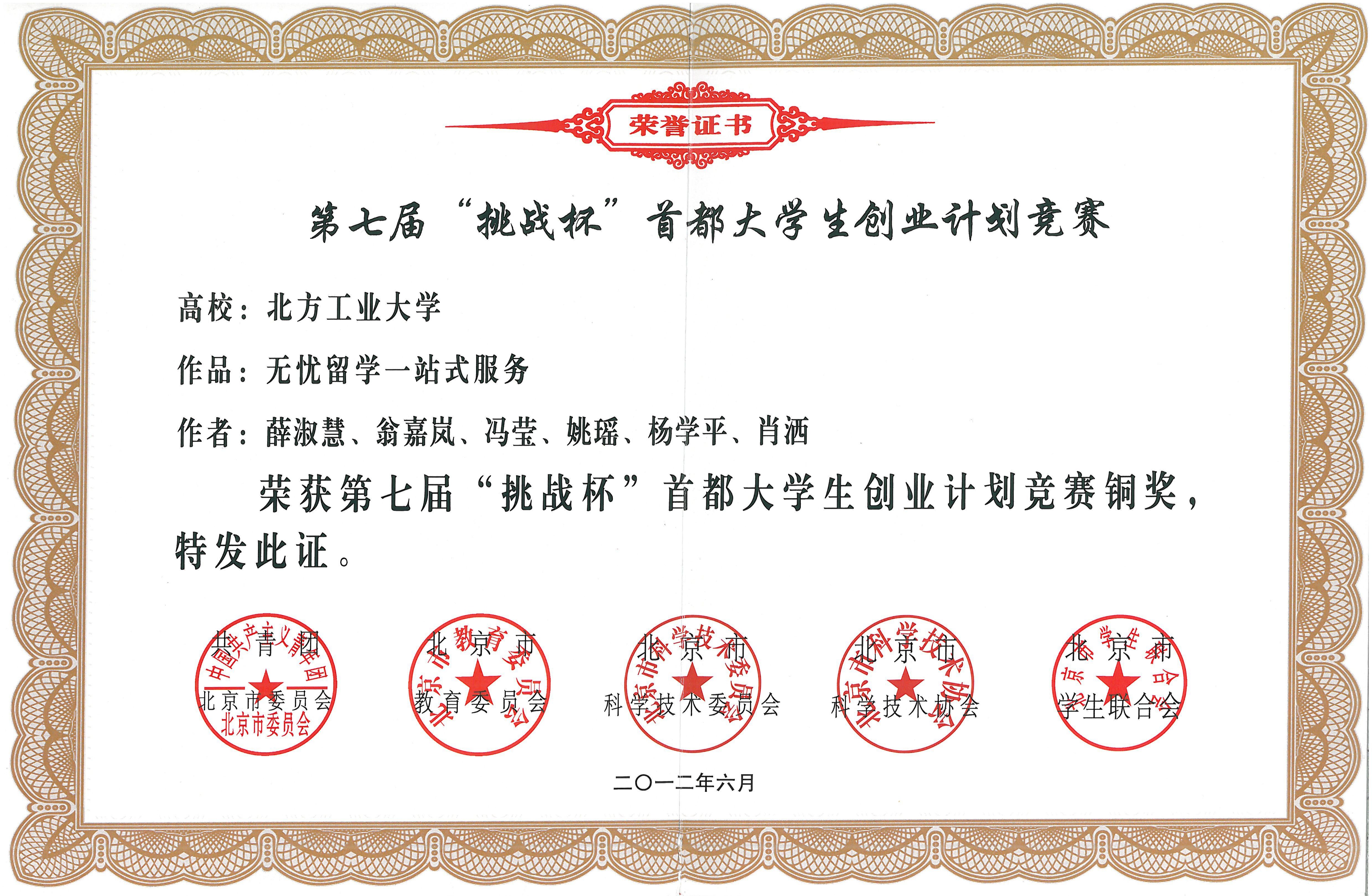 第七届“挑战杯”首都老员工创业计划大赛铜奖 |